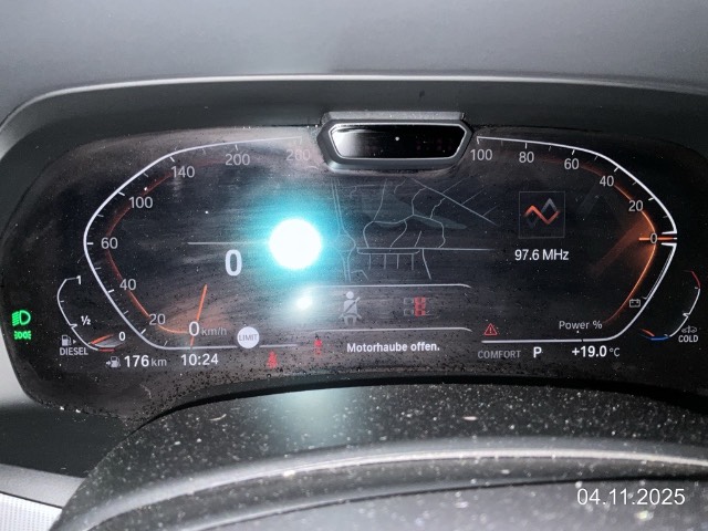 Akustikverglasung – Verwendung von verstärkten Verbundglasscheiben für die Seitenscheiben – Verstärkung der Frontscheibe von 4,5 mm auf 5 mm – Gesteigerter Fahrkomfort durch Reduzierung der Aussengeräusche, Assist: Aktive Geschwindigkeitsregelung mit Stop &amp, Assist: Driving Assistant Kamera- und radarbasiertes Fahrerassistenzsystem bestehend aus: – Spurwechselwarnung – Querverkehrswarnung hinten – Heckkollisionswarnung – Vorausschau für Speed Limit Info, Assist: Driving Assistant Professional, Assist: Parking Assistant Plus, BMW Display Key Schlüssel-Masse: ca. 90×55×15 mm Funktionsumfänge: – LCD-Farbdisplay inkl. Touchbedienfeld – Anzeigemöglichkeit von Fahrzeug-Statusinformationen (z. B. Reichweite, Service-Hinweise, Fahrzeug-Verriegelung etc.) – Regulation der Temperatur im Fahrzeuginneren – Bedienmöglichkeit der Standheizung (in Verbindung mit SA 536 Standheizung) – Höhenverstellung des Fahrzeuges von aussen – Kabelloses Laden des Schlüssels – Zusätzliches USB-Ladekabel – Funktionelle Reichweite: 300 m, BMW Garantie: BMW Gewährleistungsverlängerung – 4 Jahre/200000 km (es gilt das zuerst Erreichte), BMW Gestiksteuerung – Spezifisch festgelegte Funktionen können im Erkennungsbereich oberhalb der vorderen Mittelkonsole durch Gestik per Hand gesteuert werden., BMW Head-Up Display – Vollfarbige Projektion fahrrelevanter und situationsspezifischer Informationen auf die Windschutzscheibe., Dekor: BMW Individual Instrumententafel lederbezogen – Instrumententafel oben und Türbrüstungen in Leder Walknappa Schwarz mit Nahtbild – Instrumententafel unten in Weltfarbe, Dekor: Glasapplikation CraftedClarity für Interieurelemente Handgefertigte geschliffene Kristall-Glaselemente: – Wählhebel mit beleuchtetem «X» Symbol – iDrive Controller – Start Stopp Knopf, Getränkehalter, temperiert – Getränkehalter beheizt und gekühlt in der Mittelkonsole – Einzeln aktivierbar über Tasten (links und rechts) – Klimafunktion dargestellt über Ambiente Beleuchtung (Blau und Rot), Integral-Aktivlenkung – Anpassung des Lenkwinkels der Hinterräder verbunden mit geringerem Lenkaufwand für ein agileres und in Parksituationen komfortableres Fahrverhalten. Hinterachse mitlenkend, Integrierte Universal Fernbedienung – Zur Fernsteuerung von elektrischen Toren, Klima: Klimatisierungsautomatik 4- Zonen, Lackierung: Metallic-Lackierung, Media: harman/kardon Surround Sound-System – Digitaler Verstärker mit individuell einstellbarem Equalizing, 464 W Verstärkerleistung, 9 Kanäle. Lautsprecherblenden mit harman/kardon-Schriftzug, 16 Lautsprecher., Paket: Ambient Air Paket – Luftionisation und Duftaromen für den Fahrzeuginnenraum. Intensität der Duftaromen in drei Stufen regelbar über iDrive Controller oder Taste im Klimabedienteil. Anzeige im Control Display – Jeweils zwei anwählbare Duftkartuschen im Handschuhfach, bei durchschnittlicher Nutzung ca. 6 Monate haltbar. Über BMW Zubehör bestellbar – Im Starter-Kit sind zwei Düfte enthalten: Blue Suite No. 1 und Golden Suite No. 2, Panorama-Glasdach, Räder: 22&quot, Räder: Reifenreparatur-Set (Tire Fit), Sitze: Aktive Sitzbelüftung vorn, Sonnenschutzrollo, hintere Türseitenscheiben – Rollo für hintere Türseitenscheiben manuell bedienbar, Sonnenschutzverglasung – Stärker eingefärbte Verglasung ab der B-Säule im hinteren Fahrzeugbereich, Travel &amp, Türen: Soft-Close-Automatik für Türen – Ermöglicht ein bequemes und sicheres Schliessen der Türen ohne viel Kraftaufwand und störende Zuschlaggeräusche. Versehentlich nicht richtig geschlossene Türen werden automatisch zugezogen.