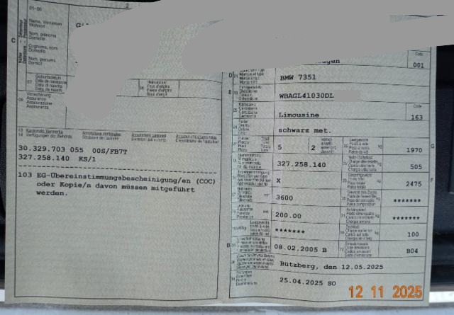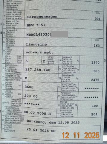 Serienaustattung Fahrer und Beifahrer-Airbag Seitenairbag für Fahrer und Beifahrer Elektronische Wegfahrsperre Seitenairbag für Fondpassagiere ITS-Kopfairbag Radio/CD BMW Business Lenksäule elektrisch verstellbar Multifunktions-Lenkrad inkl. Geschwindigkeitsregelung Velours-Fussmatten vorn und hinten Elektrische Sitzverstellung mit Memory Elektrische Sitzverstellung Fahrer und Beifahrer Fensterheber elektrisch hinten Aussenspiegel elektrisch verstellbar und heizbar Sonnenschutzrollo für Heckscheibe elektrisch Innen- und Aussenspiegel automatisch abblendbar Automatische Umluft Control AUC Soft Close Automatic für Kofferraum SCA Park Distance Control PDC Regensensor Aussentemperaturanzeige Bordcomputer Wärmeschutzglas grün Xenon-Licht Nebelscheinwerfer vorne Dynamische Stabilitäts-Control DSC Automatische Stabilitäts-Control + Traktion Antiblockiersystem ABS Servotronic Steptronic für Automatic Dynamic Brake Control DBC Diebstahlwarnanlage Heizbare Scheibenwaschdüsen Klimaautomatik mit erweitertem Umfang Scheinwerfer-Waschanlage Fensterheber elektrisch vorn Stoff Flachgewebe Mittelarmlehne im Fond Leseleuchten vorne + hinten 3 Kopfstützen hinten Zentralverriegelung Fernbedienung für Zentralverriegelung Uni-Lackierung Leichtmetallräder Sternspeiche 171 Keine Gewähr auf die Angaben der Serienausstattungen Sonderausstattung |