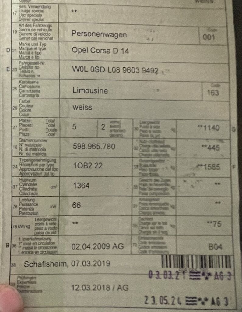 Keine technische Prüfung (Werkstatttest) vorgenommen