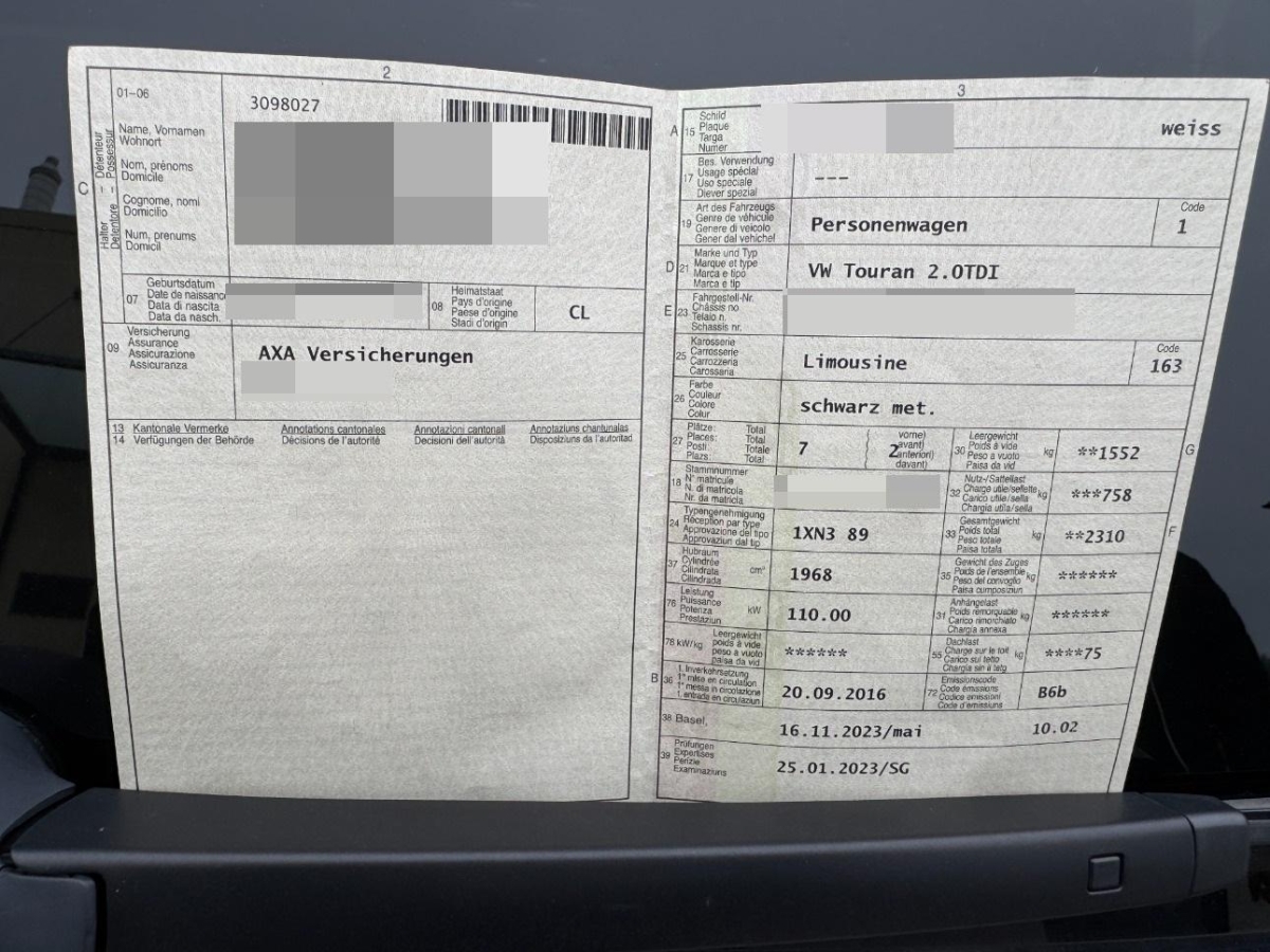 | Fahrzeugausweis | Vorhanden |