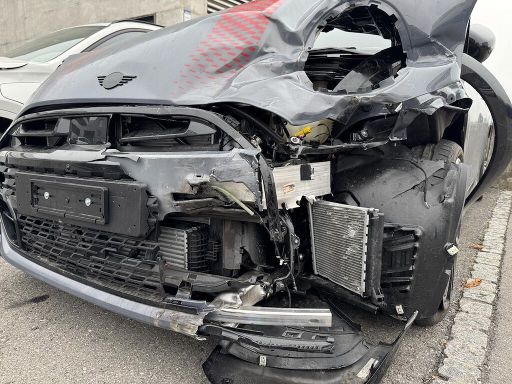 Dabei wurde die Motorhaube, beide Kotflügel, beide Längsträger, Radhaus links, Querträger, Schlossblech deformiert sowie diverse Anbauteile (Stossfänger, Scheinwerfer, Kondensator, Wasserkühler, Motoranbauteile, Getriebe, komplette Radaufhängung links, Lenkung etc.) teilweise stark beschädigt.