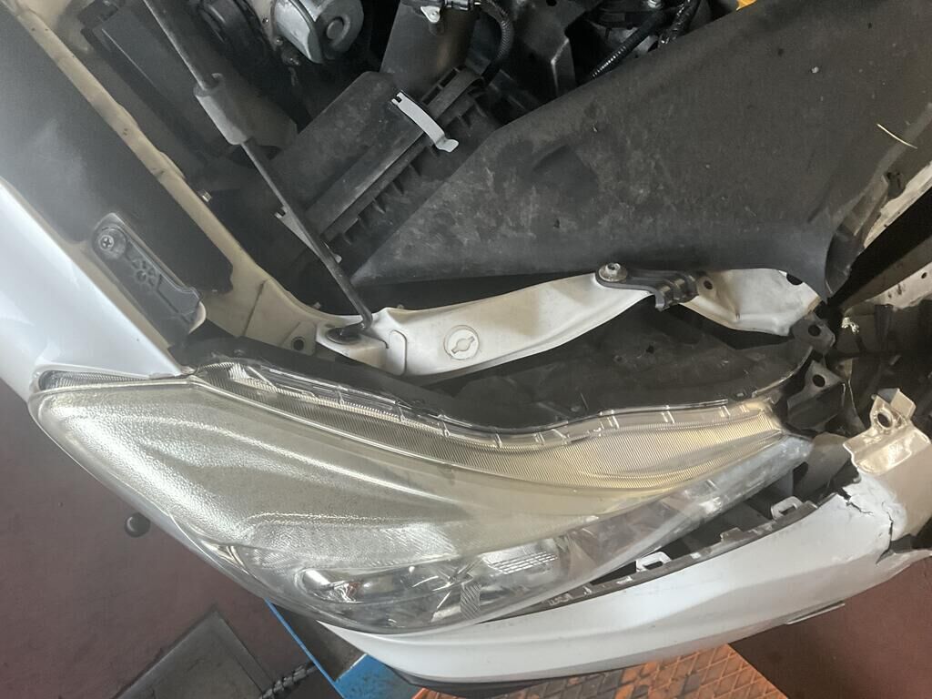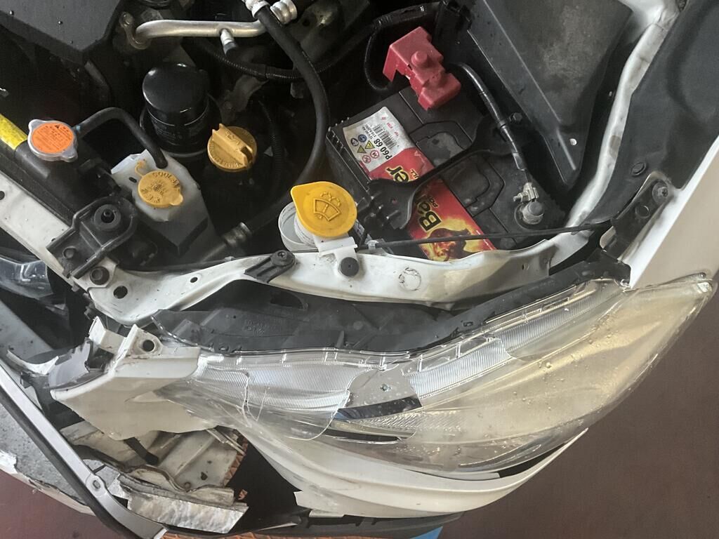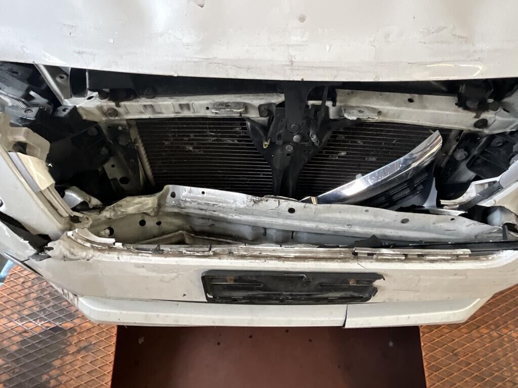 Pare-chocs avant, calandre, phares, capot moteur, armature frontale, radiateur et ailes avant endommagés.