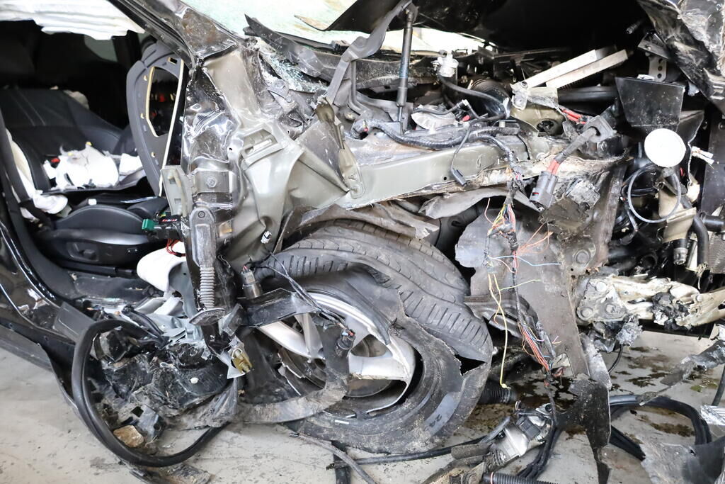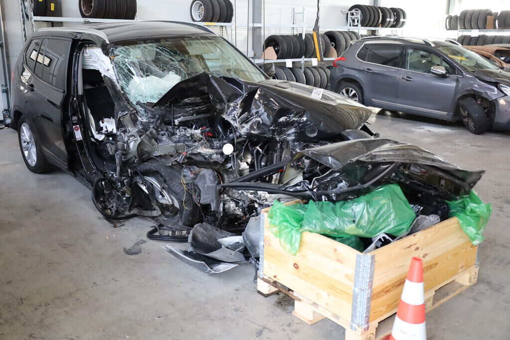 Beide Frontairbags, Kopf- und Seitenairbags rechts sowie Gurtstraffer ausgelöst.