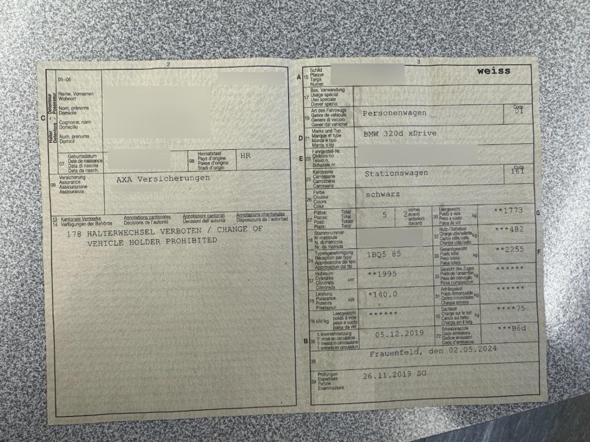Seitenaufprall-Schutzsystem, Umgebungsausleuchtung (Follow me home), Sonnenblende rechts, Cupholder, Servotronic, Sonnenblende links, ISOFIX Kindersitzvorrichtung, Gepäcktrennnetz, TeleService, DAB+ (Digital Audio Broadcasting), Schliessystem mit Zentralverriegelung, Pollenfilter (Staubfilter), Klimatisierungsautomatik, Sitze: Ausführung 5 Sitzplätze, Assist: Dynamische Traktionskontrolle (DTC), Mittelarmlehne hinten, Räder: Reifendruck-Kontrollanzeige, Parkbremse, elektromechanisch, Assist: ATTENTION ASSIST (Aufmerksamkeits-assistent), Antiblockiersystem (ABS), 8-Stufen-Automat sequentiell, Airbag: Seitenairbag für Fahrer und Beifahrer, Verzurrösen, Einstiegsschienen mit Logo, BMW BluePerformance mit AdBlue, Warndreieck, Wegfahrsperre elektronisch, Innenraumbeleuchtung, Auto Start-/Stop-Anlage, Media: USB-Anschluss, Regensensor für Scheibenwischer vorne, Rücksitzlehne geteilt abklappbar, Allradantrieb permanent, Kopfstützen hinten, Stoff-Ausstattung, Window-Kopfairbags, Speed Limit Info, Fahrerlebnisschalter inkl. ECO PRO, Lackierung: Uni-Lackierung, Assist: Tempomat mit Bremsfunktion, Check-Control-System, ConnectedDrive Services, Airbag: Airbag Fahrer und Beifahrer, Intelligenter Notruf, Freisprecheinrichtung Bluetooth mit USB-Anschluss, iDrive Controller Display, Connected Package, Dynamische Stabilitätskontrolle (DSC), LED-Tagfahrlicht, Reifenkontrollanzeige, Heckklappe automatisch, Leuchtweitenregulierung elektrisch, Multifunktions-Sportlenkrad in Leder, Licht: Heckleuchten in LED-Technik – einteilige LED-Heckleuchten mit Rauchglas Komponenten – Heckleuchte mit Schlusslicht, Bremslicht, Fahrtrichtungsanzeiger (LED-Technologie), Lenkrad: Lenksäule elektrisch einstellbar, Active Guard, Licht: LED Scheinwerfer, Partikelfilter und Oxydationskatalysator, Abschliessbare Radschrauben, Leichtmetallräder V-Speiche 775, 17J Reflexsilber, Elektrische Fensterheber, Assist: Crash-Sensor, Wärmeschutzverglasung, Veloursfussmatten vorne und hinten, Dachreling schwarz, Steckdose 12V, Armlehne vorne mit Ablagefach, Drittes Bremslicht, Durchladesystem