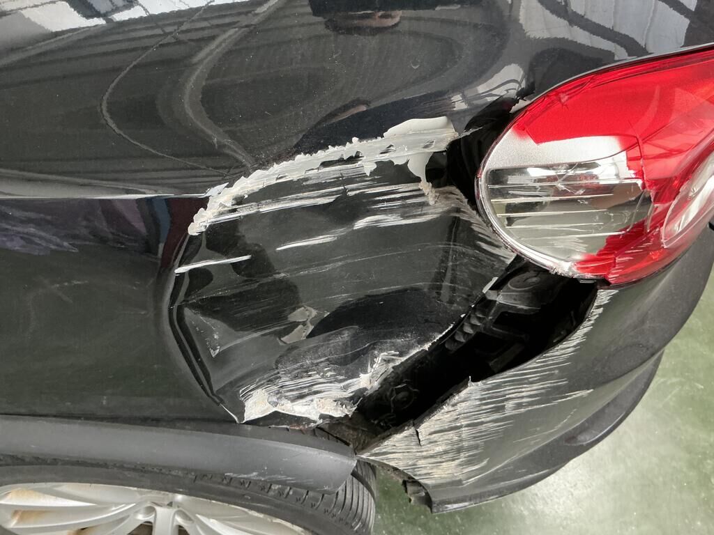 Aile, pare-chocs, feu et support endommagés.