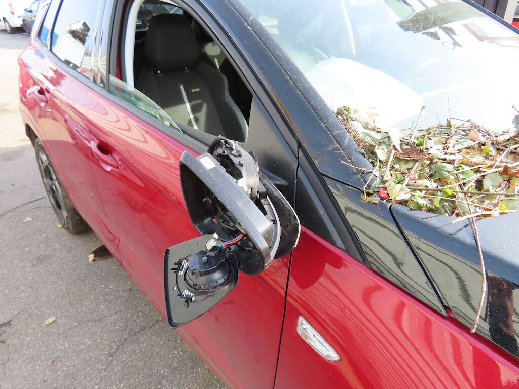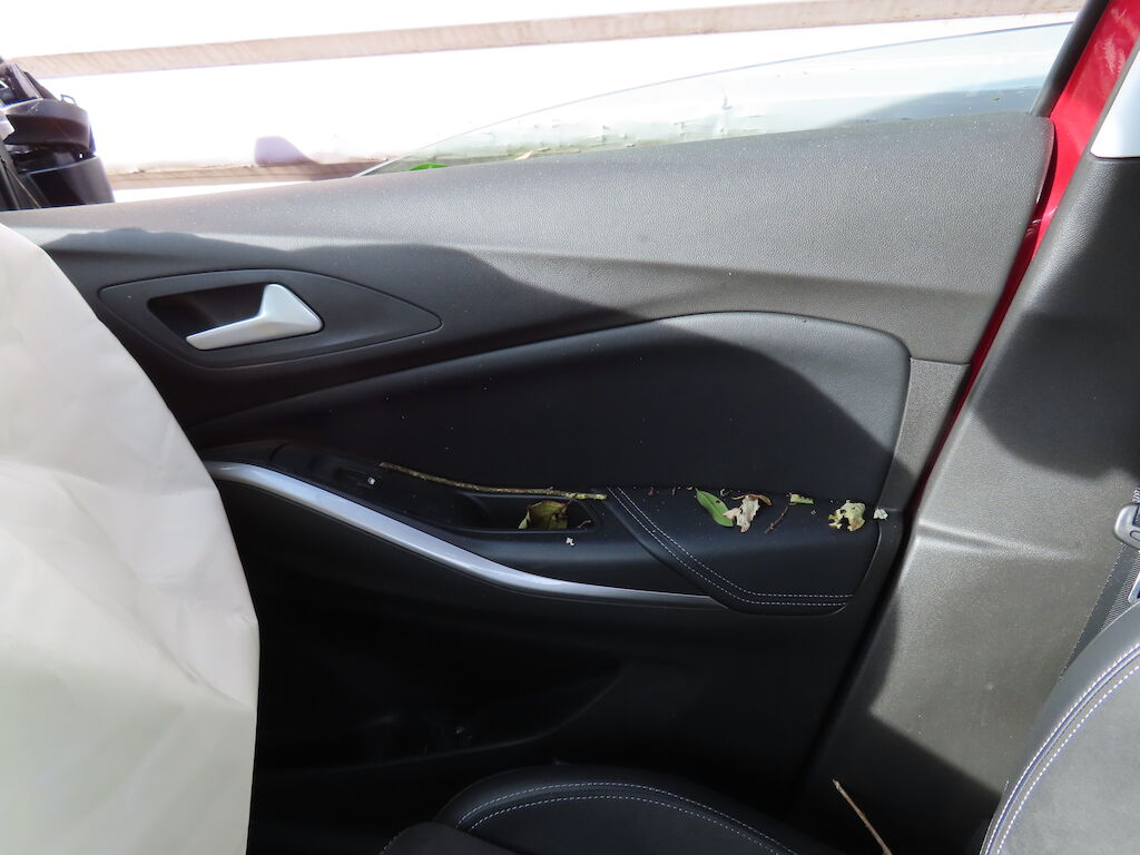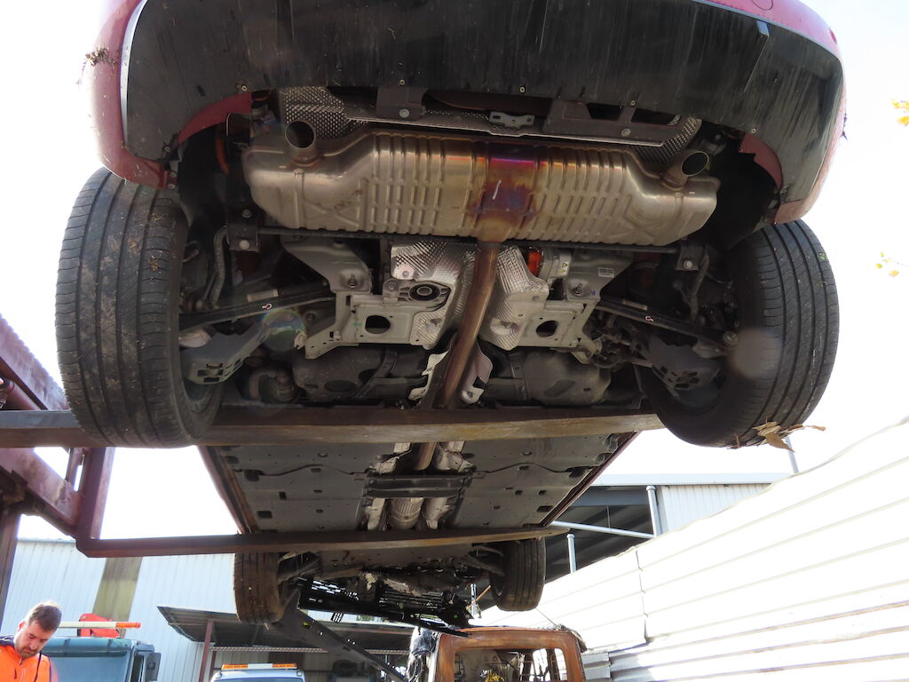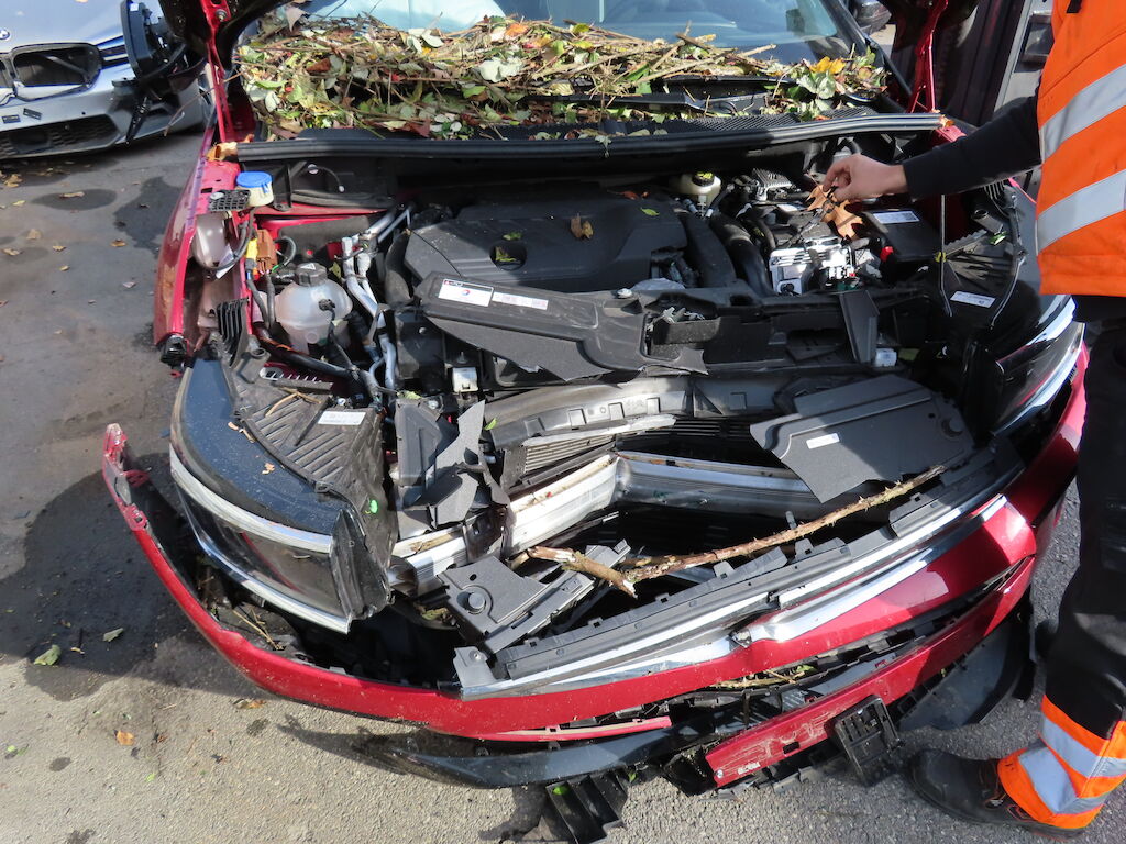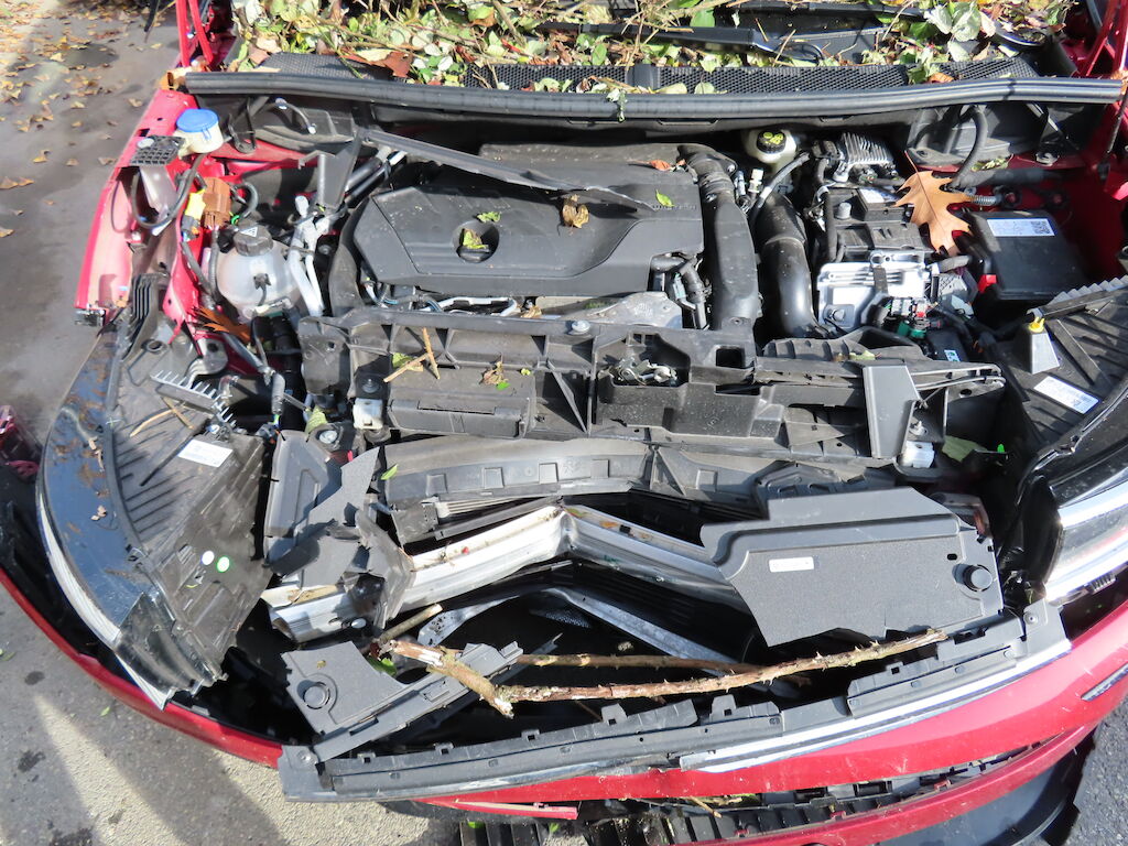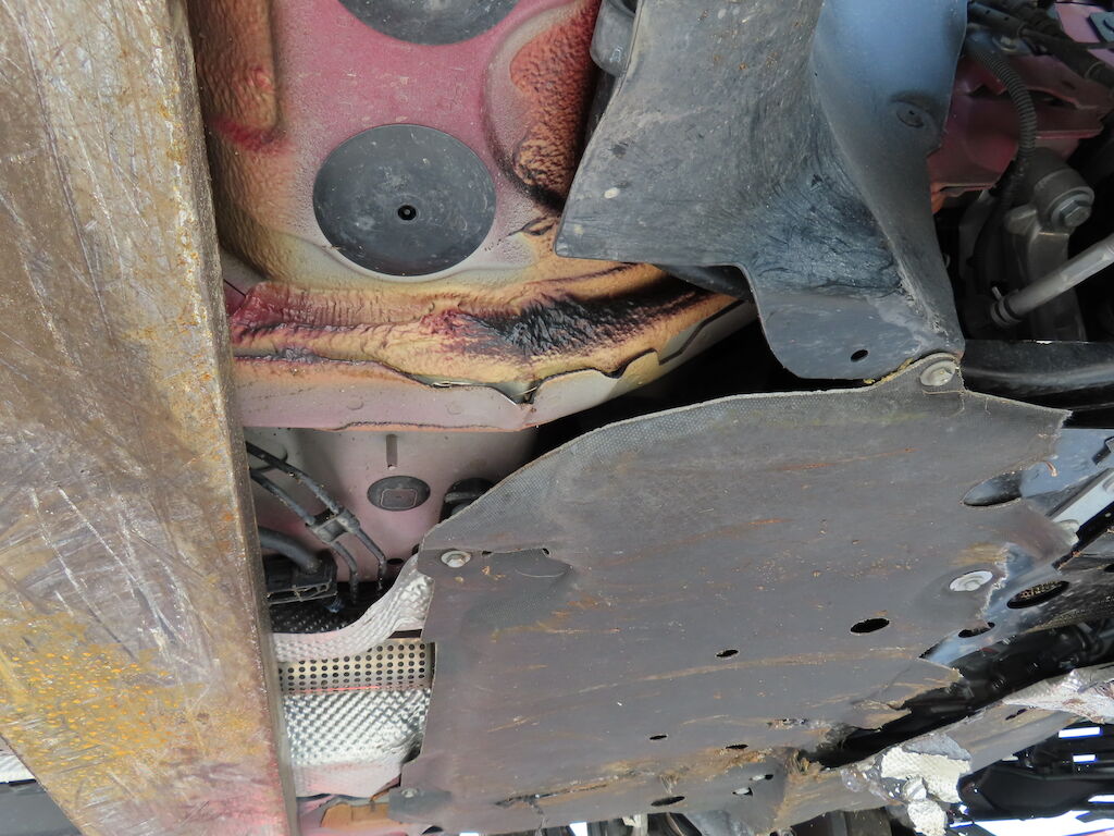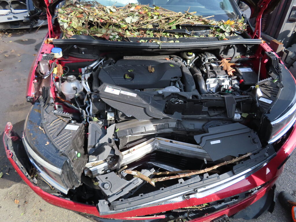 – Pare-chocs avant, calandre, grilles, masque, groupe optique et thermique, durites, tuyaux, faisceaux, capteurs, divers pièces rapportées dans le compartiment moteur, caches de soubassement, rétroviseur droit, garnitures intérieures. Divers caches plastique : Impactés-éraflés-brisés