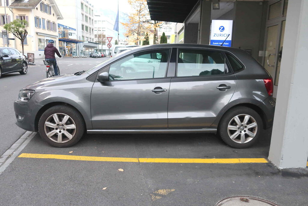 Seitenwand, Felge, Stossfänger und Türe hinten rechts.