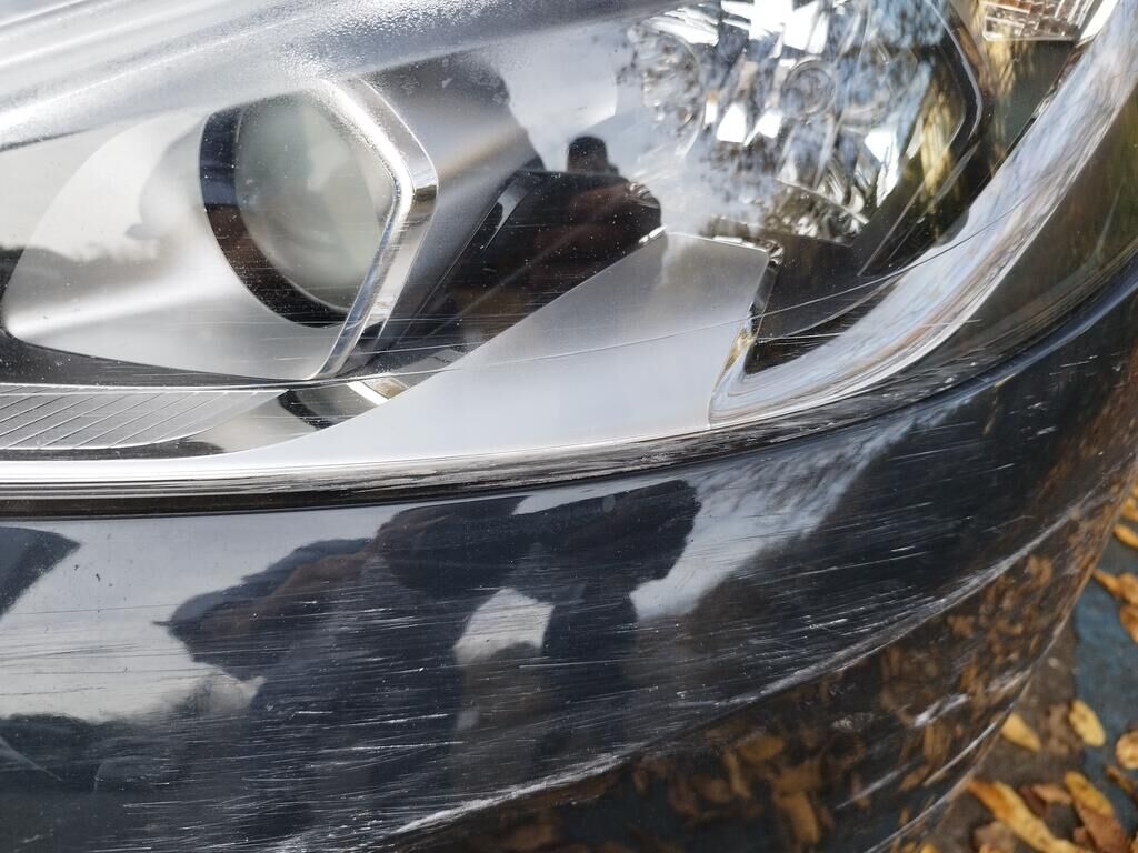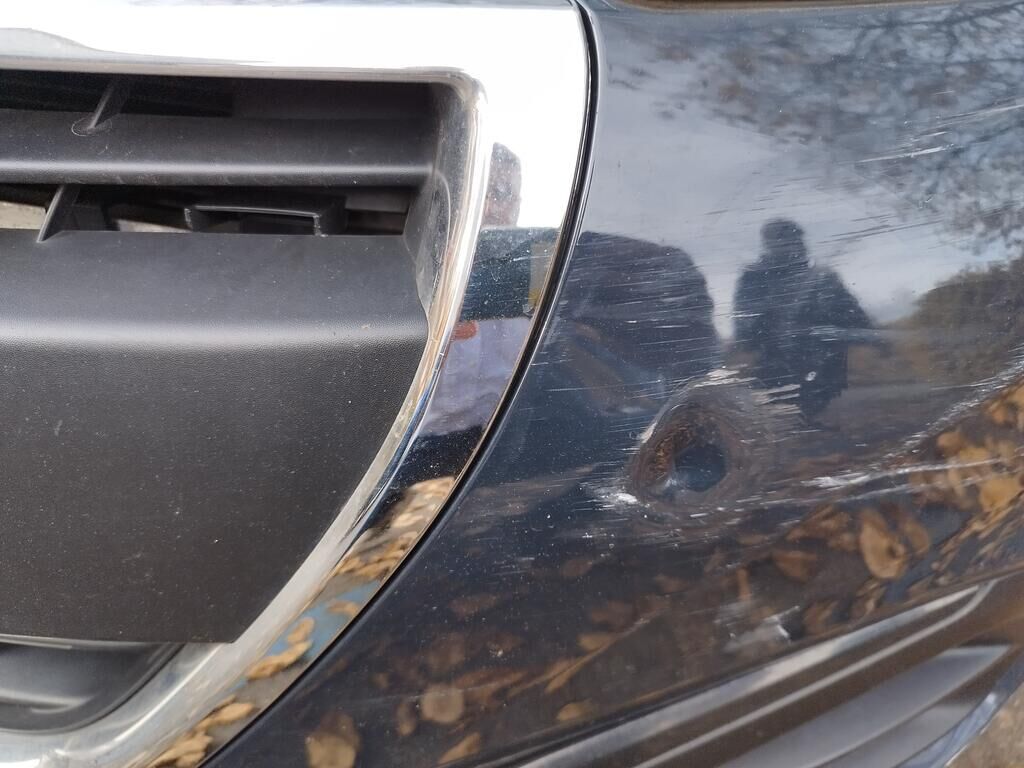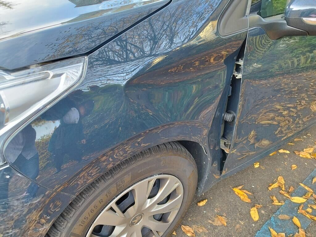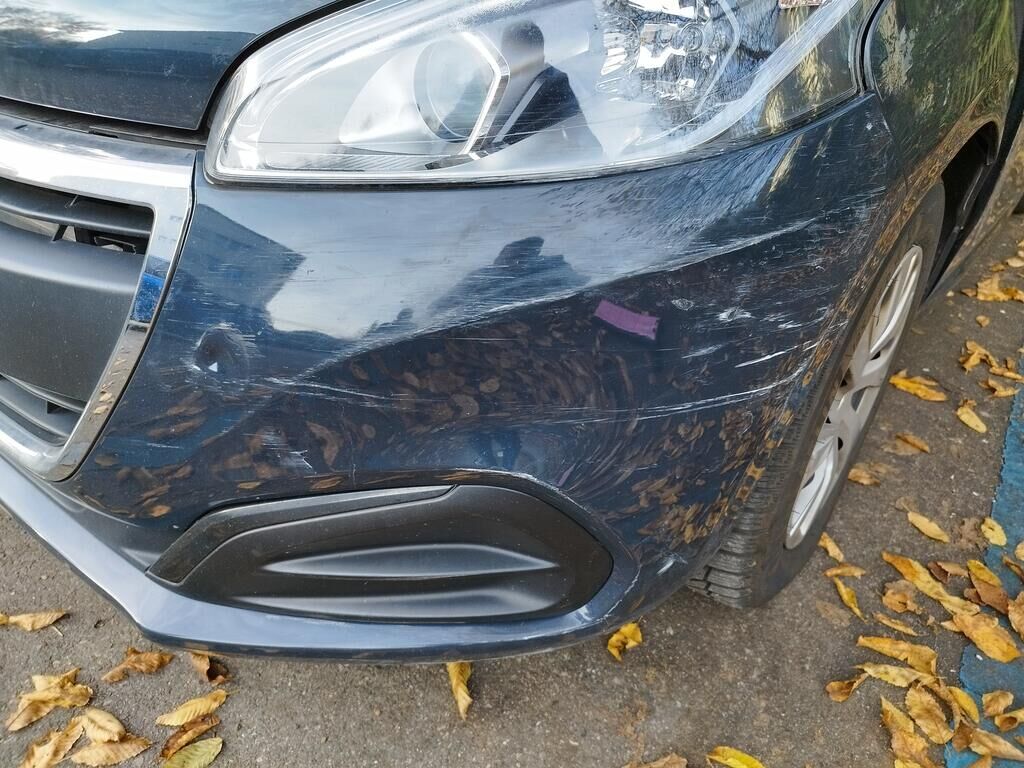 Die Stossstange vorne links hat Kratzspuren und ist deformiert, der Kühlergrill ist gerissen, der Scheinwerfer vorne links hat Kratzspuren, der Kotflügel vorne links ist deformiert, die Türe vorne links ist deformiert.