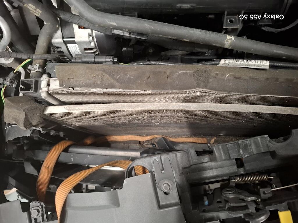 Dommage partie frontale: capot moteur charnières et serrure de capot moteur aile droit renfort de pare chocs fortement pliés déformés emboutis enfoncés endommagés, enveloppe grilles supports garnitures spoiler de pare chocs feu diurne droit phare droit porte serrure convoyeurs d’air radiateur carter de ventilateur et ventilateur cassés fissurés éclatés arrachés endommagés, condenseur de climatisation radiateur de refroidissement percés déformés endommagés.