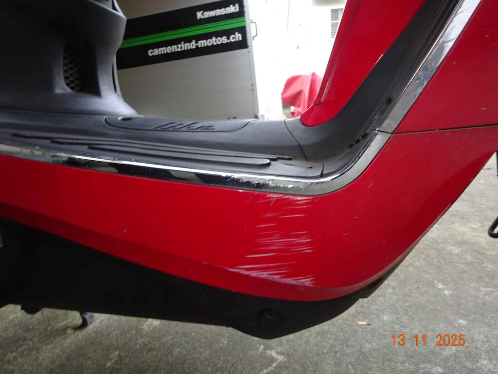 Heck, rechte Seite, Top Case, Scheinwerfer, Radabdeckung vorne, Auspuff, diverse Verkleidungen, Spiegel, Griffe