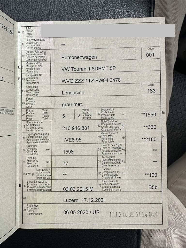 | Numero telaio | WVGZZZ1TZFW046478 |