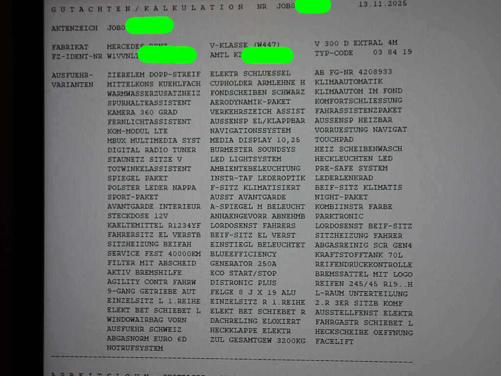Front/Vorbau, Kühlerpaket, Motor?, Holmen Re, 3-Airbags, Gurtstraffer, Frontscheibe