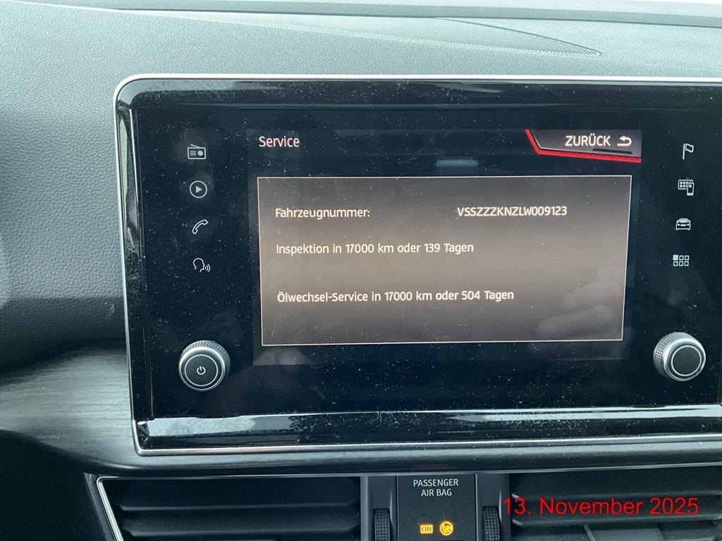 2 Schlüssel mit Fernbedienung, 3 USB-Schnittstellen, 3-Punkt-Sicherheitsgurte auf allen Plätzen, ABS, EBD elektronische Bremskraftverteilung, Abgedunkeltes Scheibenglas (ab B-Säule), Airbag: Beifahrerairbag deaktivierbar, Airbag: Fahrer und Beifahrer Airbag, Airbag: Knie-Airbag für Fahrer, Airbag: Seitenairbag für Fahrer und Beifahrer, Airbag: Window-Kopfairbags, Allradantrieb permanent, Assist: Auto-Hold-Funktion, Assist: Automatische Distanzregelung ACC, Assist: Berganfahrhilfe, Assist: Einparkhilfe vorne und hinten mit optischer Anzeige, Assist: Fussgängerschutz, Assist: Multikollisionsbremse, Assist: Müdigkeitserkennung, Assist: Notrufsystem, Assist: Parkassistent, Assist: Rückfahrkamera, Assist: Speedlimiter, Assist: Spurhalteassistent Lane Assist, Assist: Tempomat, Assist: Umfeldbeobachtung ‘Front-Assist’ mit City-Notbremsfunktion, Aussenspiegel mit LED-Umfeldbeleuchtung, Aussenspiegel rechts und links beheizt, elektrisch verstell-/ und einklappbar, Aussenspiegel und Türgriffe in Wagenfarbe, Bordcomputer, Dachreling silber, Easy-Entry Lehnenentriegelung, Elektronische Differentialsperre (XDS), Elektronische Parkbremse, Elektronisches Stabilitäts-Programm (ESP) mit Reifendruckkontrolle, Bremsassistent (BAS) und Sperrdifferential, Fahrprofilauswahl, Fensterheber Elektrisch vorne + hinten, Full Digital Cockpit, Getriebe: 7-Gang-Sequentielle-Getriebe mit Automatikfunktion, Gurte Höhenverstellbar vorne, Gurtkontrolle, Heckklappe elektrisch öffnend ”Virtual Pedal”, Heckscheiben-Wisch-Waschanlage mit Intervall, ISOFIX Kindersitzvorrichtung, Innenleuchten LED, Innenspiegel automatisch abblendbar, Katalysator geregelt, Klapptische an den Rückenlehnen der Vordersitze, Klima: 3-Zonen-Klimatisierungsautomatik, Kopfstützen hinten (3), Kopfstützen hinten höhenverstellbar, Kopfstützen vorne höhenverstellbar, Lenkrad: Ledermultifunktionslenkrad, Lenkrad: Lenkrad mit Schaltwippen, Lenkrad: Lenkrad und Schalthebelgriff in Leder, Licht- und Regensensor, Licht: Coming-home-Funktion, Licht: LED Heckleuchten, Licht: LED Scheinwerfer, Licht: LED-Tagfahrlicht, Licht: Nebelscheinwerfer mit Cornering-Funktion, Media: 8” Farbdisplay (Touchscreen), Media: AUX-Anschluss, Media: CD-Laufwerk, Media: DAB+ (Digital Audio Broadcasting), Media: Lautsprecher 8, Media: Mobiltelefon Freisprecheinrichtung Bluetooth, Media: SD-Kartenslot, Media: SEAT FullLink, Media: SEAT Media System Plus, Media: Sprachsteuerung, Media: USB-Anschluss, Pollenfilter (Staubfilter), Polster: Stoff-/Alcantara-Ausstattung, Progressivlenkung, Radlaufblenden in Offroad-Optik, Räder: 4 Leichtmetallfelgen 19J mit Pneu, Räder: Reifenreparatur-Set (Tire Fit), Schliess- und Startsystem KESSY, Schublade unter Fahrersitz, Servolenkung geschwindigkeitsabhängig, Sitze: Gurtstraffer mit Gurtkraftbegrenzer, Sitze: Lendenwirbelstütze vorne manuell, Sitze: Mittelarmlehne hinten, Sitze: Mittelarmlehne vorne, Sitze: Rücksitzlehne geteilt abklappbar 1/3 – 2/3, Sitze: Sportsitze vorne, Sitze: Vordersitze höhenverstellbar, Sonnenblende Fahrer und Beifahrerseite mit beleuchtetem Spiegel, Stop/Start-Technologie, Teppichfussmatten vorne und hinten, Türgriffe innen beleuchtet, Wegfahrsperre elektronisch, Zentralverriegelung mit Fernbedienung, Zierleisten Seitenfenster verchromt