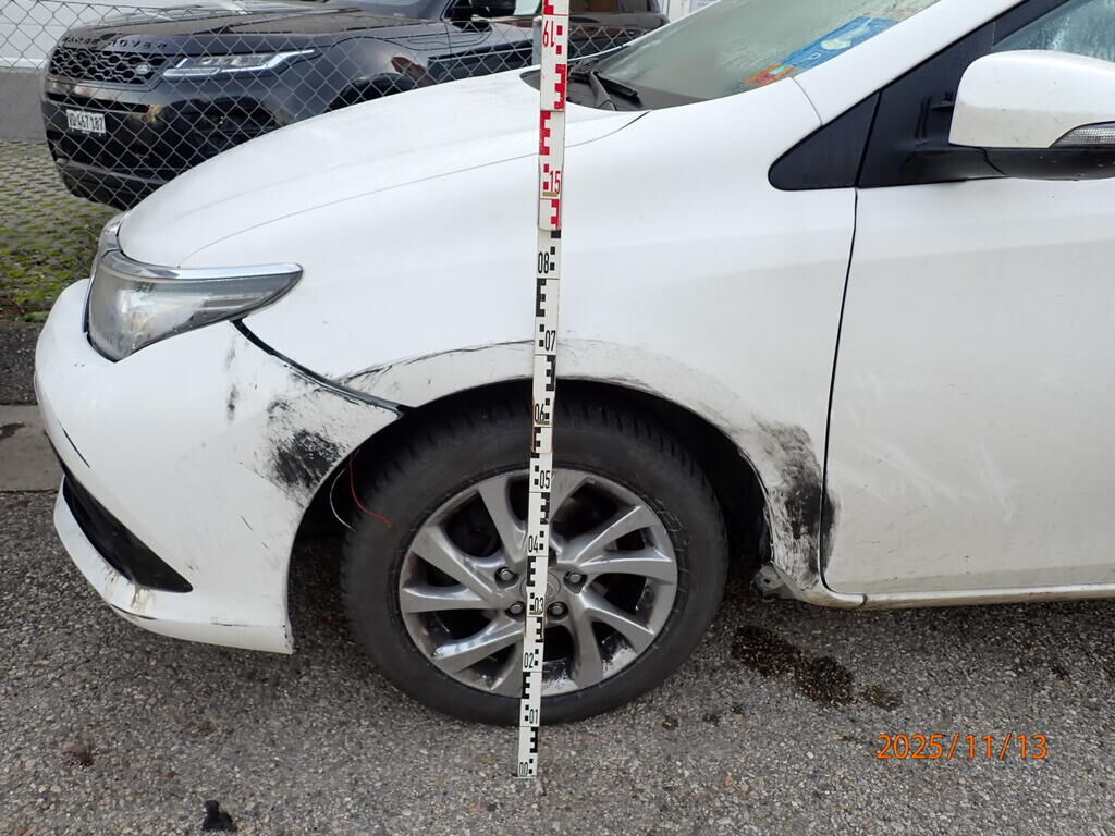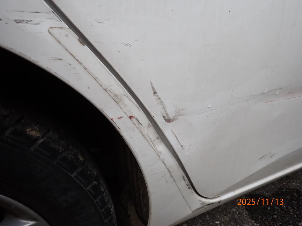 Pare-chocs avant cassé, aile avant, porte avant, roue avant, moyeu, roulement, trapèze