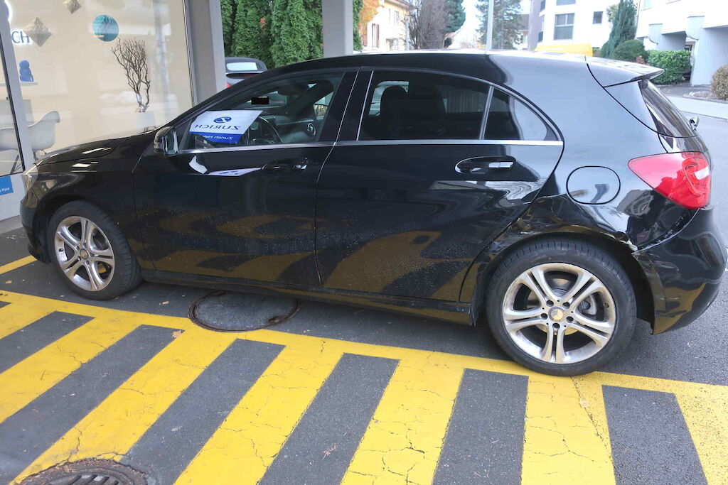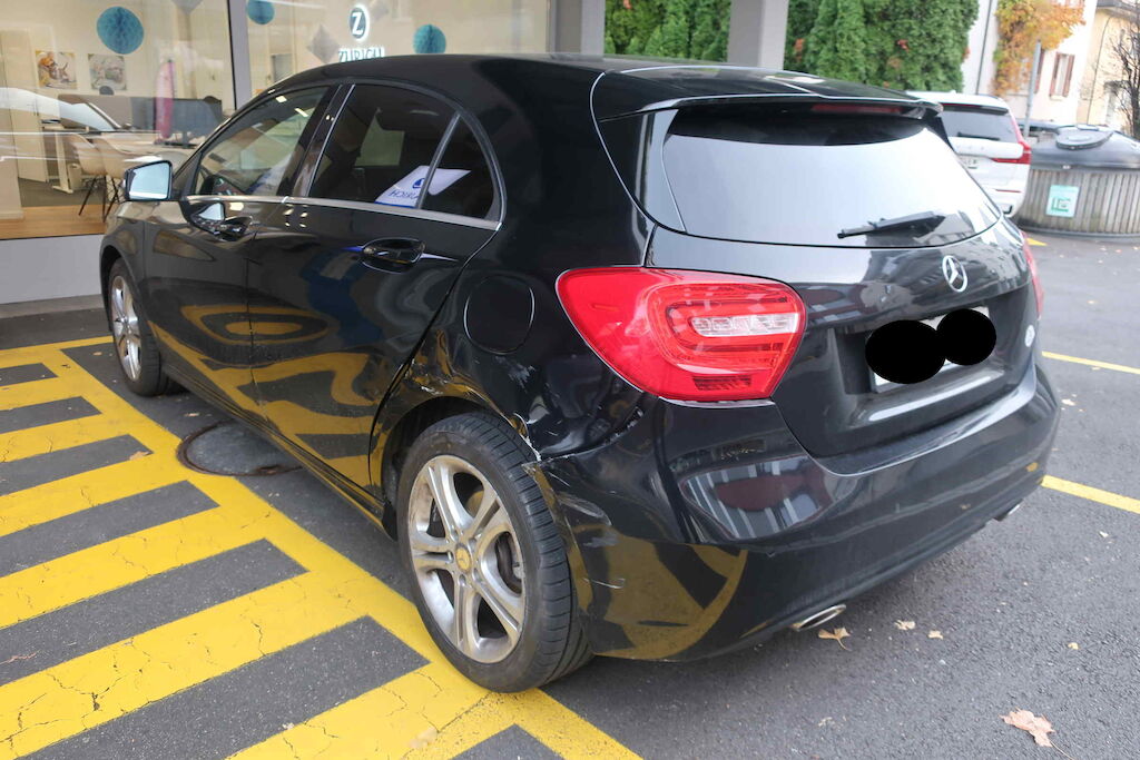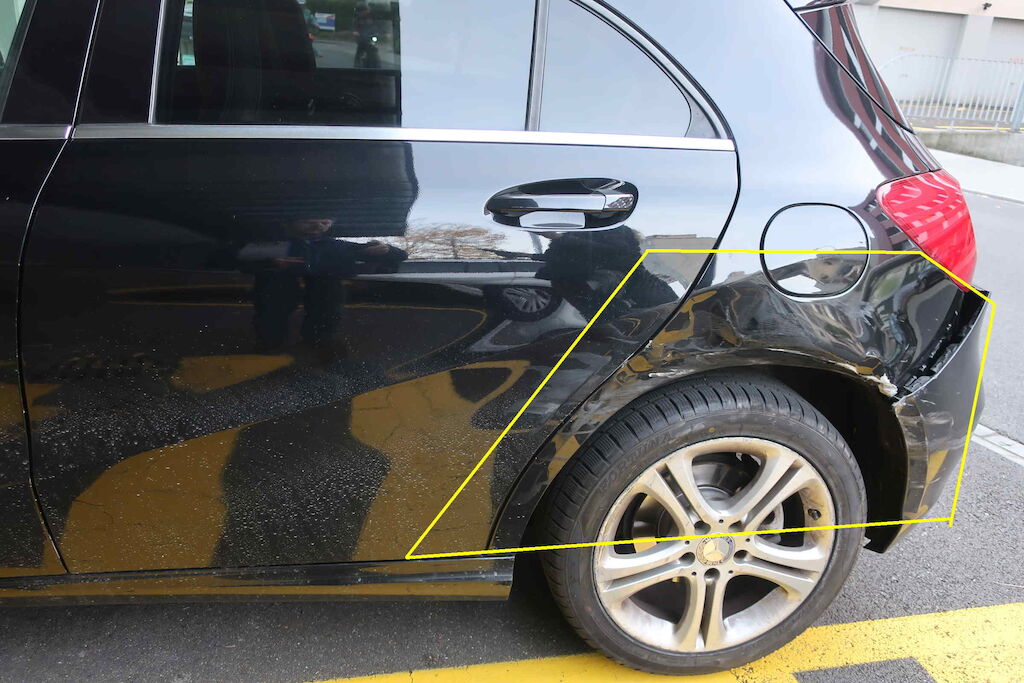 Türe hinten links, Seitenwand links, Stossfänger inkl. Halter h.l., Felge und Radaufhängung hinten links.