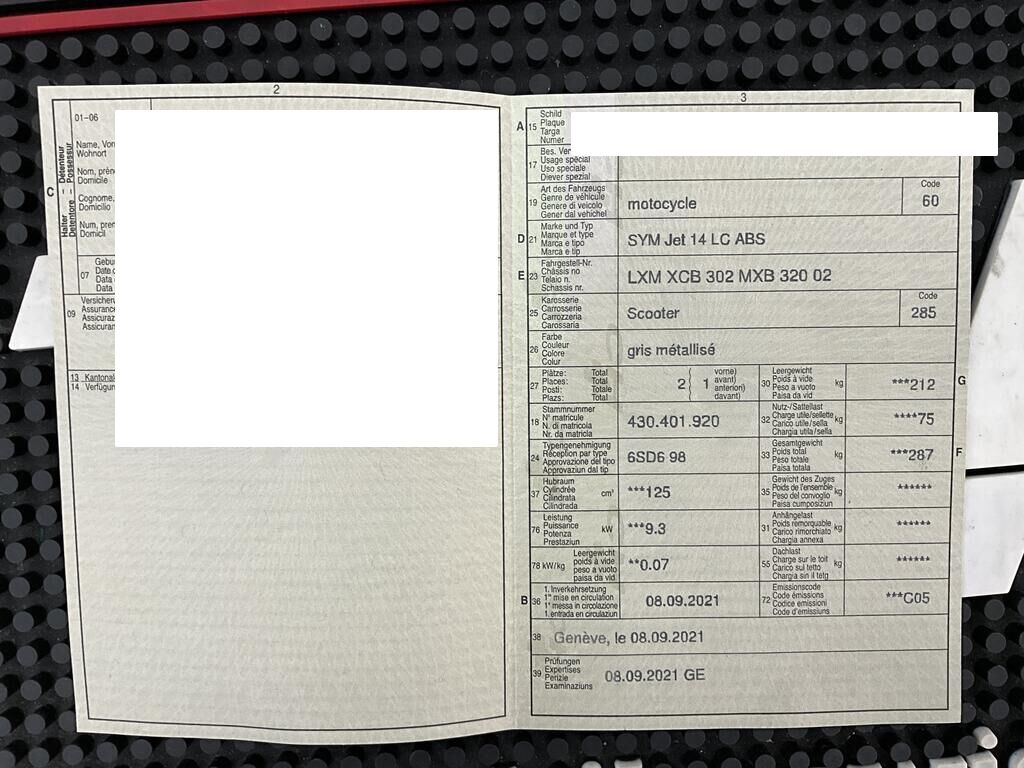 | Pneumatici | Axe 1: L: 2.5 mm, R: 2.5 mm, Dimension: 100/90/14 Axe 2: L: 2 mm, R: 2 mm, Dimension: 110/80/14 |