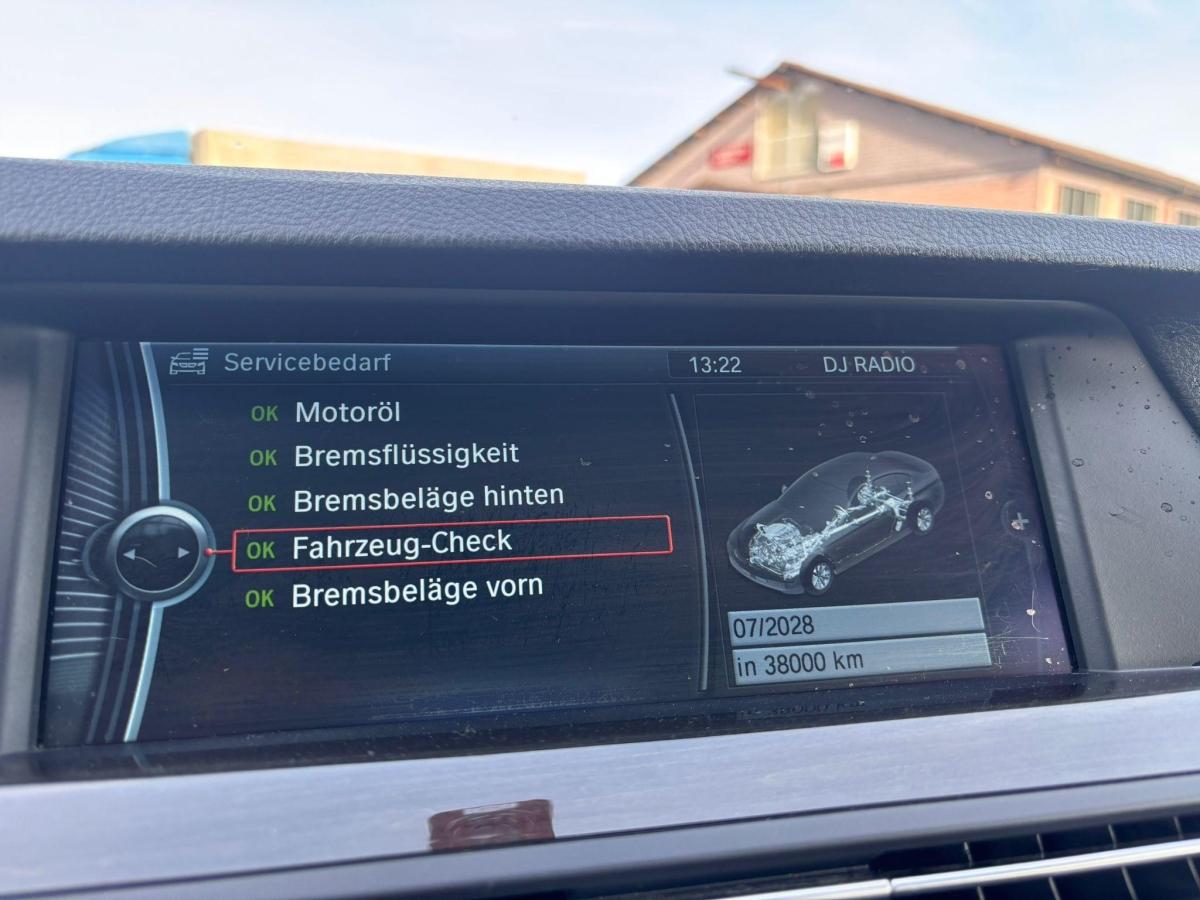 Umgebungsausleuchtung (Follow me home), Aussentemperaturanzeige, Aux-In Anschluss, Abschliessbare Radschrauben, 12-Volt-Steckdose hinten, Aktive Kopfstützen, Veloursfussmatten, Kartentaschen an den Rückenlehnen, Info-Display, iDrive-System, Bremsbelag-Verschleissanzeige, Innenspiegel automatisch abblendbar, Leuchtweitenregulierung von innen, Ausstiegsleuchten in den Türen vorn, Gurtstraffer vorne, Servotronic, Scheibenwaschdüsen beheizt, Zentralverriegelung mit Fernbedienung, Assist: Anfahrassistent, Interieurleisten in schwarz, Start-/Stop-Knopf, Bordcomputer, Einstiegsschienen, Dynamische Bremsleuchten, Mittelarmlehne hinten, Scheibenwischer vorne mit Regensensor und automatischem Einschalten der Abblendlichter, Radio BMW Professional, Getriebe: 8-Stufen-Automat Steptronic, Licht: Nebelschlussleuchte, Leder-Multifunktionslenkrad im 3-Speichen-Design, Lichtwarnsummer, Airbag: Airbag Fahrer und Beifahrer, Elektronische Parkbremse, Bremsenergie-Rückgewinnung, Aussenspiegel rechts und links beheizt und elektrisch verstellbar, asphärisch gewölbtes Spiegelglas, ISOFIX Kindersitzvorrichtung, Drehzahlmesser, Drittes Bremslicht, Wegfahrsperre elektronisch, Nebelscheinwerfer, Stoff-Ausstattung Diagonal, Katalysator geregelt, 12-Volt-Steckdose vorne, Assist: Tempomat mit Bremsfunktion, Cupholder vorne und hinten, Radiovorbereitung, Antenne, Entstörung und 6 LS, Hill Descent Control (HDC), Befestigungsösen im Laderaum, Frontscheibe Verbundglas, Vordersitze elektrisch verstellbar, Fahrersitz mit Memory-Funktion, Beide Make up-Spiegel beleuchtet, Lackierung: Uni-Lackierung, Sitzbelegungserkennung für Beifahrersitz, Airbag: Seitenairbag für Fahrer und Beifahrer, Assist: Crash-Sensor, Sonnenschutzverglasung, Chrom-Line Exterieur, Antiblockiersystem (ABS), 2-Zonen-Klimaautomatik, Nichtraucherausführung, Lenkrad: Lenkrad längs- und höhenverstellbar, Window-Kopfairbags, Leichtmetallräder V-Speiche 236, 17J, Check-Control-System, Stossstangen, Aussenspiegel und Türgriff in Wagenfarbe, Leseleuchten vorne, Bremsassistent (BAS), Dynamische Stabilitätskontrolle (DSC), Räder: Reifendruck-Kontrollanzeige, Motor Start-/Stop-Anlage, Allradantrieb permanent, Elektrische Fensterheber vorne + hinten