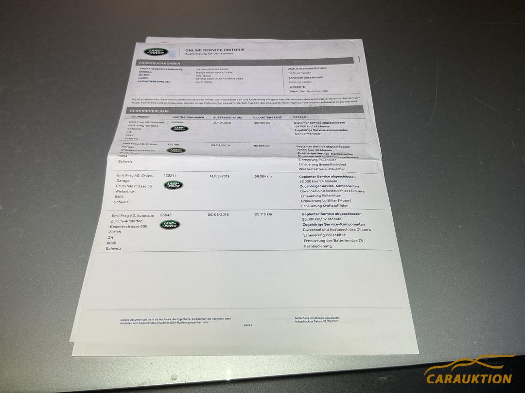 Aluminiumapplikationen dunkel, gebürstet, Bremsanlage, ohne Logo, Vorbereitung für Dachträger, Räder: Reifenreparatur-Set (Tire Fit), Xenon-Scheinwerfer mit Scheinwerfer- reinigungsanlage, autom. Leuchtweiten- regulierung und LED-Tagfahrlicht, Zusätzliche 12V Steckdosen, Fahrersitz elektrisch höhenverstellbar, AUX-Anschluss, Antiblockiersystem (ABS), Ablagebox auf Armlehne befestigt, Aussenspiegel rechts und links beheizbar und elektrisch verstellbar, Elektrische Fensterheber vorne + hinten, Assist: Bergabfahrhilfe (Hill Descent Control, HDC), Sitze: Rücksitzlehne geteilt abklappbar, Elektronisch geregelte Luftfederung, Elektrische Kindersicherung, Abblendlichtausschaltverzögerung ‘Follow me home’, ISOFIX Vorbereitung, Licht: Nebelschlussleuchte, HDD Festplatten Navigationssystem, Servolenkung geschwindigkeitsabhängig, Lenkrad: Multifunktionslenkrad in Leder, Beide Make up-Spiegel beleuchtet, Elektronische Traktionskontrolle (ASR/TCS), Assist: Notbremsassistent, Media: Sprachsteuerung, Lackierung: Uni-Lackierung, Dynamische Stabilitätskontrolle (DSC), Bluetooth-Schnittstelle, Media: Touchscreen, Airbag: Airbag Fahrer und Beifahrer, Allradantrieb permanent, Armlehne vorne mit Ablagefach, Nichtraucherausführung, Seiten- und Beckenairbag (Pelvisbag) für Fahrer und Beifahrer, Aussenspiegel in Wagenfarbe, Tempomat mit Geschwindigkeitsbegrenzer, Lenkrad längs- und höhenverstellbar, Zentralverriegelung mit Fernbedienung, USB-Anschluss, Verteilergetriebe einstufig, Assist: Elektronische Parkbremse, Polster: Spezielle Stoff-Ausstattung, Fahrwerk: Terrain Response, Licht: Drittes Bremslicht, Stopp-/Start-System, Einparkhilfe hinten, Schalldämmende Verbundverglasung, Regensensor für Scheibenwischer vorne, Licht: LED Heckleuchten, Abschliessbare Radschrauben, Assist: Warnblinkautomatik bei Vollbremsung, Haltegriffe für Einstieg, Tagfahrlicht, Höhenverstellbare Gurten vorne, Anhänger-Stabilitätsprogramm, Dachhimmel, Park Distance Control vorne, Klima: 2-Zonen-Klimaautomatik, Auspuffanlage mit 2 Endrohren, Getriebe: 8-Stufen-Automat sequentiell, Blinker in Aussenspiegel, Heckscheibenheizung, Räder: TPMS Reifendrucküberwachungssystem, Getönte Scheiben, Wegfahrsperre elektronisch, Laderaumabdeckung, Dach in Metallic, Partikelfilter und Oxydationskatalysator, Audiosystem, Diebstahlwarnanlage mit Innenraumüberwachung