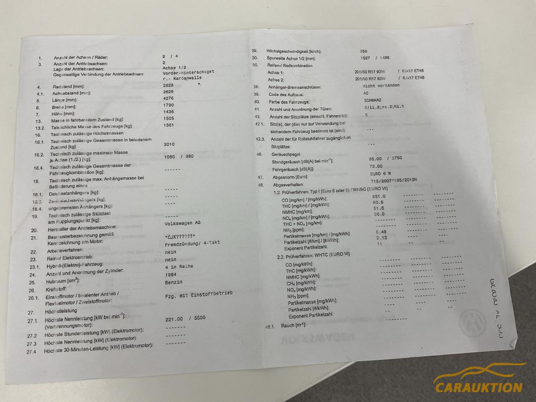 Ladeboden variabel, Kombi-Instrumente mit Chromzierringen, Diebstahlwarnanlage Plus (Innenraumüberwachung, Abschleppschutz und Komfortschliessung), Cupholder vorne und hinten, Klima: Pollenfilter (Staubfilter), Heckscheiben-Wisch-/Waschanlage mit, Aktive Kopfstützen, Elektronische Differentialsperre (XDS+), Kühlergrill Sport Look, Bi-Xenon-Scheinwerfer mit Tagfahrlicht in LED-Technik, inkl. Scheinwerferwasch- anlage, Türgriffe aussen in Wagenfarbe, Progressivlenkung, Assist: Müdigkeitserkennung, Gurtkontrolle, Kartentaschen an den Rückenlehnen, Tageskilometerzähler, Fahrprofilauswahl, Innenlicht-Abschaltverzögerung, Radiosystem Composition Media, Antiblockiersystem (ABS), Tankdeckel-Entriegelung von innen, Elektrische Fensterheber vorne + hinten, Bremssättel schwarz lackiert, Stossstangen in Wagenfarbe, Park Distance Control vorne und hinten, LED Heckleuchten, dunkelrot, Auto-Hold-Funktion, Airbag: Airbag Beifahrer deaktivierbar, Klima: Klimatisierungsautomatik Climatronic, Seitenairbag für Fahrer und Beifahrer, Knie-Airbag für Fahrer, Elektronische Parkbremse, Sport-Stossfänger, Bremsenergie-Rückgewinnung, 3 Kopfstützen hinten, Katalysator geregelt, Lenkrad: Lenkrad längs- und höhenverstellbar, Licht: Drittes Bremslicht, LED-Heckleuchten abgedunkelt, Antennen-Diversity, Sportsitze vorne, Sitze: Beifahrersitz höhenverstellbar, Ablagen in den Türen, Tagfahrlicht, ECS Sport Funktion (Eletronic Stability Control), 12 Volt-Steckdose im Laderaum, Getriebe: Sequentielles 6-Gang-Getriebe DSG mit Automatikfunktion, Sitze: Rücksitzlehne geteilt abklappbar, Räder: Reifenkontrollanzeige, Allradantrieb permanent, Laderaumabdeckung, Kopfstützen hinten abklappbar, Heckdiffusor, Airbag: Airbag Fahrer und Beifahrer, Zentralverriegelung mit Fernbedienung, Abgedunkelte Seiten- und Heckscheibe, Airbag: Window-Kopfairbags, Elektronisches Stabilitäts-Programm ESP, Teppichfussmatten vorne und hinten, Sitze: Fahrersitz höhenverstellbar, Heckscheibenheizung, Antriebsschlupfregelung (ASR), Beide Make up-Spiegel beleuchtet, Schublade unter den Vordersitzen, Drehzahlmesser, Gurtstraffer vorne, Durchlademöglichkeit in der Rücksitzbank inkl. Mittelarmlehne hinten, Bremsassistent (BAS), Radiosystem Composition Colour, Scheinwerfer-Waschanlage, Wartungsintervall-Anzeige, Multifunktionsanzeige Plus, Licht: Nebelschlussleuchte, Fussstütze und Pedalkappen in Edelstahl, LED Nebelscheinwerfer, Radiovorbereitung, Antenne und Entstörung, Lederhandbremshebel, Handschuhfach beleuchtet, klimatisiert und abschliessbar, Ambientebeleuchtung ( blau ), Scheibenwaschdüsen beheizt, Leuchtweitenregulierung automatisch, Stoff-/Alcantara-Ausstattung, Geschwindigkeitsregler und -begrenzer, Leder-Multifunktionslenkrad DSG im 3-Speichen-Design inkl. Schaltwippen, ISOFIX Kindersitzvorrichtung, Kennzeichenbeleuchtung in LED, Wegfahrsperre elektronisch, 3-Punkt-Sicherheitsgurte auf allen Plätzen, Innenspiegel automatisch abblendbar, Kurvenlicht inkl. Abbiegelicht, Dachspoiler, Höhenverstellbare Gurten vorne, Leseleuchten vorne, Aussenspiegel in Chrom matt, Multifunktionsanzeige Premium, Blinker in Aussenspiegel, 2 Schlüssel mit Fernbedienung, Scheibenwischer vorne mit Intervall, Aussenspiegel rechts und links beheizt und elektrisch verstellbar, asphärisch gewölbtes Spiegelglas, Mittelarmlehne hinten mit 2 Getränkehaltern, Einstellbare Lendenwirbelstütze für den Fahrer und Beifahrer, Licht: Coming-home-Funktion, Wassertemperaturanzeige, Licht: Fernlichtregulierung Dynamic Light Assist, Kofferraumbeleuchtung, Aussentemperaturanzeige, Mittelarmlehne vorne mit Ablagefach, Vordersitze beheizbar, Einstiegsschienen beleuchtet, Regensensor für Scheibenwischer vorne, Sportfahrwerk mit Tieferlegung
