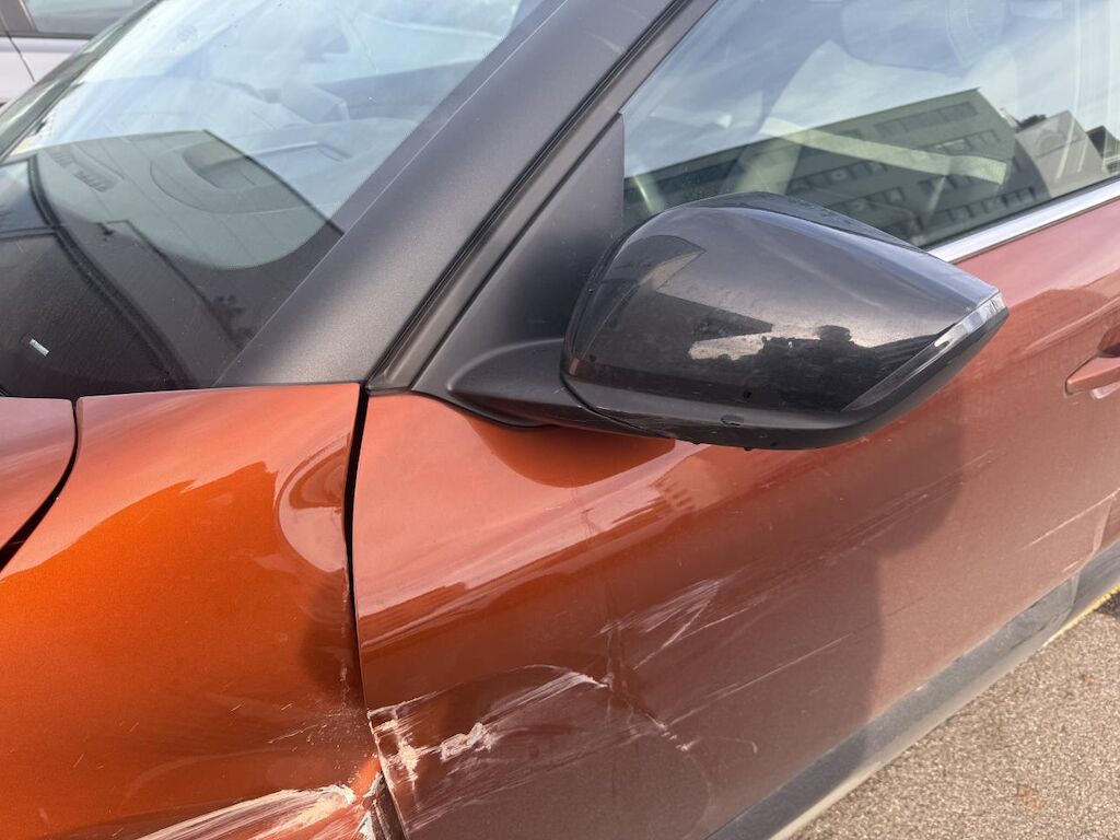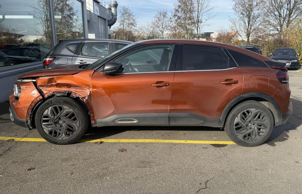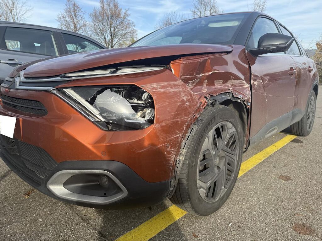 Dabei wurde die Stossstange vorne, der Scheinwerfer links, der Scheinwerfer und Kotflügel rechts, die Motorhaube, der Kotflügel links, die Koflügelverstärkung links innen, die Radlaufblende, die Felge vorne, die A-Säule, der Aussenspiegel, die Türe vorne inkl. Türgriff und Türabdeckung, die Türe hinten inkl. Abdeckung, die Felge hinten, die Radlaufblende hinten, die Seitenwand hinten, die Stossstange hinten sowie diverse Anbatueile im Anprallbereich beschädigt. Lenkung vorne und Vorderachse Risiko. Div. Carrosserie Teile sind leicht beschädigt.