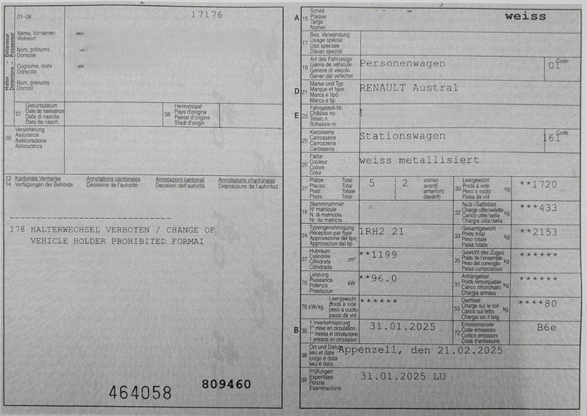 Die (vom Fahrzeugexperten) ermittelten Reparaturkosten beziehen sich auf das versicherte Ereignis. Allfällige zusätzliche, nicht versicherte Schäden/Vorschäden sind in den Reparaturkosten nicht enthalten. Die deklarierten Ausstattungsmerkmale können von der effektiven Ausstattung abweichen.