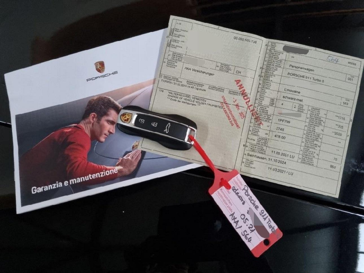 Media: Connect Plus inkl. Online-Navigation, Apple CarPlay – LTE-Telefonmodul mit SIM- Kartenleser, USB-Schnittstellen, SD-Kartenleser, drahtlosem Internetzugang sowie zahlreichen Porsche Connect Diensten, Türeinstiegsblenden Aluminium gebürstet mit geprägtem “911 turbo S” Schriftzug, 2 Doppelendrohrblenden im 911 Turbo Design aus Edelstahl schwarz (hochglanz), Feinstaubfilter inkl. Aktivkohlefilter, Lackierung: Uni-Lackierung, Frontscheibenwischanlage mit Aerowischerblättern und Scheibenwaschdüsen, Dekor: Sport Chrono Uhr mit eigenständigem Zifferblatt, Licht: Rückleuchten inkl. Rückfahrlicht, Schlusslicht, Nebelschlusslicht und Blinker sowie dritte Bremsleuchte und Nummernschildbeleuchtung in LED-Technik, 2 Abgasturbolader mit variabler Turbinengeometrie (VTG), 2 Ladeluftkühler, Integrierte Trockensumpfschmierung mit bedarfsgeregelter Ölpumpe, Media: Porsche Communication Management (PCM) mit hochauflösendem 10,9-Zoll Touchdisplay, Räder: Reifendruckkontrollsystem ( RDK ), 2 Ottopartikelfilter (OPF), Außenspiegel elektrisch anklappbar inkl. Spiegelumfeldbeleuchtung, Verdeckhimmel in Stoff schwarz, Kleiderhaken an den Sitzrückenlehnen, Getriebe: 8-Gang Porsche Doppelkupplungsgetriebe (PDK), Lenkrad: Lenkradkranz, Türgriffe, Armauflage Türverkleidung und Ablagefach Mittelkonsole mit Glattleder bezogen, Räder: 20/21-Zoll 911 Turbo S Räder Vorderachse: 9,0 J x 20-Zoll 911 GT3 Räder mit Sportreifen 255/35 ZR 20 vorn Hinterachse: 11,5 J x 21-Zoll 911 GT3 Räder mit Sportreifen 315/30 ZR 21 hinten, Assist: Tempostat, Paket: Sport Chrono Paket inkl. Mode-Schalter, Porsche Track Precision App & Reifentemperaturanzeige, Intelligenter Leichtbau in Aluminium-Stahl-Verbundbauweise, Kofferraum vorn, Grün getönte Wärmeschutzverglasung, Wasserkühlung mit Thermomanagement, Media: 2 USB Anschlüsse im Ablagefach Mittelkonsole, 12 Volt Steckdose im Fußraum Beifahrerseite, PDK-Wählhebel mit Automatikmodus, manuelle Gangwahl über Schaltpaddles am Lenkrad, Reifendichtmittel mit elektrischem Kompressor, Heckscheibenheizung, Kombiinstrument mit zentralem analogen Drehzahlmesser – zwei 7-Zoll TFT-Displays, 10,9-Zoll Centerdisplay, Auto Start-Stop-Funktion, Wegfahrsperre mit Zentralverriegelung und Funkfernbedienung, Alarmanlage und Ultraschall-Innenraumüberwachung, Fussmatten, Aussenspiegel-Unterseite in Exterieurfarbe, Bugverkleidung mit seitlichen Lufteinlässen inkl. aktiver Kühlluftklappen und Lufthutzen (Airblades) in Schwarz, Abgasanlage mit 2 heckteilfesten Doppelendrohrenblenden, Porsche Active Suspension Management (PASM), Türeinstiegsblenden mit Modellschriftzug, Lenkrad: Multifunktions-Sportlenkrad mit Schaltpaddles und manueller Längs- und Höhenverstellung, Fahrwerk: Bremsscheiben mit Durchmesser 350 mm vorne und 350 mm hinten, Sitze: Adaptive Sportsitze Plus mit elektrischer Verstellung aller Sitzfunktionen inkl. Seitenwangen (18-Wege), Ansteigende Mittelkonsole mit Ablagefach, Sitze: Aufnahmen für Kindersitzbefestigungssystem ISOFIX auf der Beifahrerseite, Nockenwellenverstellung und Ventilhubschaltung VarioCam Plus, Media: Sound Package Plus mit 8 Lautsprechern und 150 Watt Gesamtleistung mit integriertem Verstärker und digitalem Signalprocessing, Fahrwerk: Allradantrieb mit kennfeldgesteuerter Lamellenkupplung Porsche Traction Management (PTM), Media: Porsche Communication Management (PCM) inkl. Online-Navigation – Handyvorbereitung, Audio-Schnittstellen und Sprachbedienung, Porsche Vehicle Tracking System (PVTS), Zierleisten Schalttafel, Blenden Mittelkonsole und Türtafel in Diamar darksilver, Sitze: Fondsitzlehnen einzeln umklappbar, Bremssättel rot, Assist: Porsche Wet Mode, Seitenscheibenleisten in Schwarz, Porsche Active Aerodynamics (PAA) mit automatisch ausfahrbarem Bugspoiler, aktiven Kühlluftklappen und Spaltflügel, Aussenspiegel auf der Türbrüstung elektrisch verstell- und beheizbar, auf Fahrerseite asphärisch, Assist: Parkassistent vorne und hinten, Klima: 2-Zonen-Klimaautomatik mit getrennter Temperatureinstellung für Fahrer und Beifahrer, automatischer Umluftsteuerung inkl. Luftgütesensor, Lenkrad: Multifunktions-Sportlenkrad mit Schaltpaddles, Lenkradkranz Glattleder, Motorblock und Zylinderkopf aus Aluminium, Licht: LED-Hauptscheinwerfer mit 4-Punkt Tagfahrlicht, 2 Getränkehalter (1x als Einsatz in der Mittelkonsole und 1x Beifahrerseite), Dekor: Türöffner, Zierleisten Schalt- und Türtafel sowie Blende Mittelkonsole in Lightsilver, Dekoreinleger in Carbon matt, Fahrwerk: Porsche Torque Vectoring Plus (PTV Plus) – inkl. elektronisch geregelter Hinterachs-Quersperre mit vollvariabler Momentenverteilung, Porsche Ceramic Composite Brake (PCCB) mit 10-Kolben-Aluminium-Monobloc-Festsattelbremsen vorn und 4-Kolben-Aluminium-Monobloc-Festsattelbremsen hinten, Keramik-Verbund-Bremsscheiben mit Durchmesser 420 mm vorn und 390 mm hinten, innenbelüftet und gelocht, Bremssättel gelb