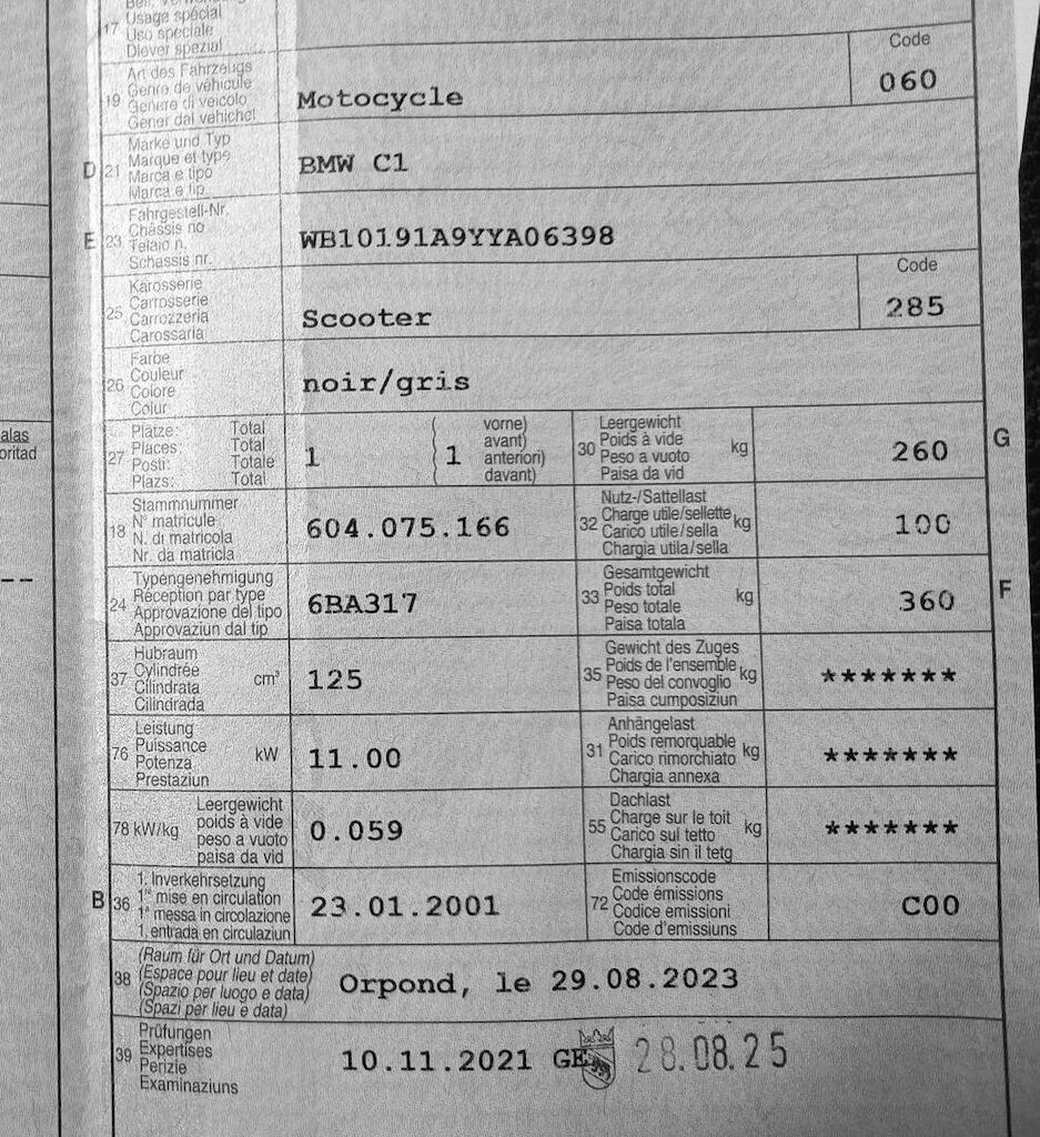 | Tipo veicolo / Costruzione / Porte | Motoveicolo / Scooter / 0 |