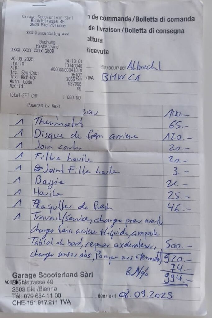 | Costi riparazione | 1’556.00 CHF | Calcolo |