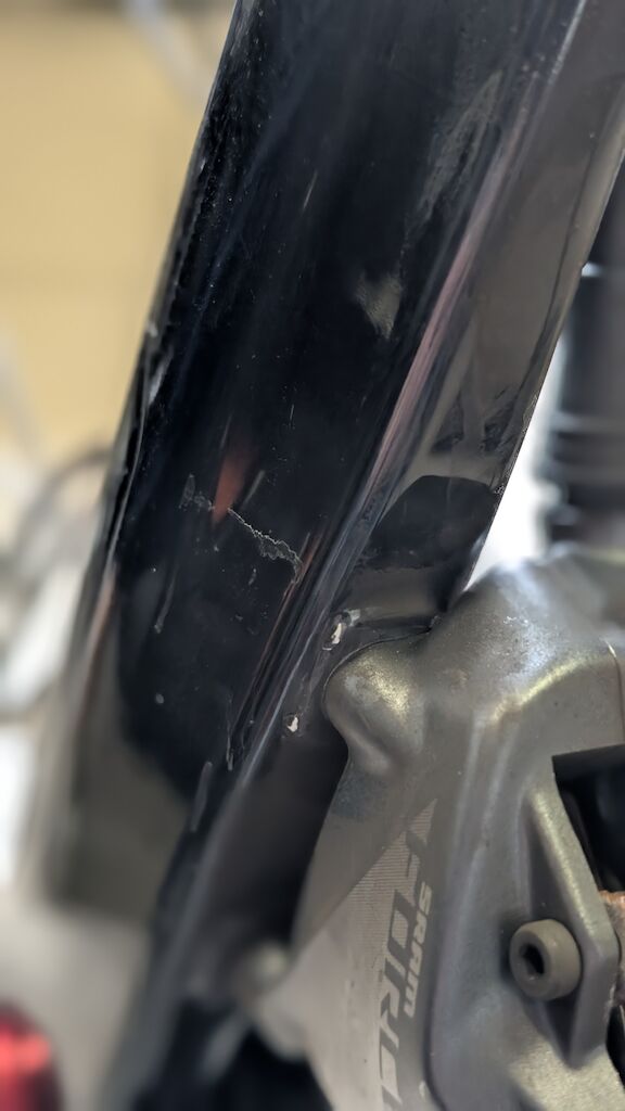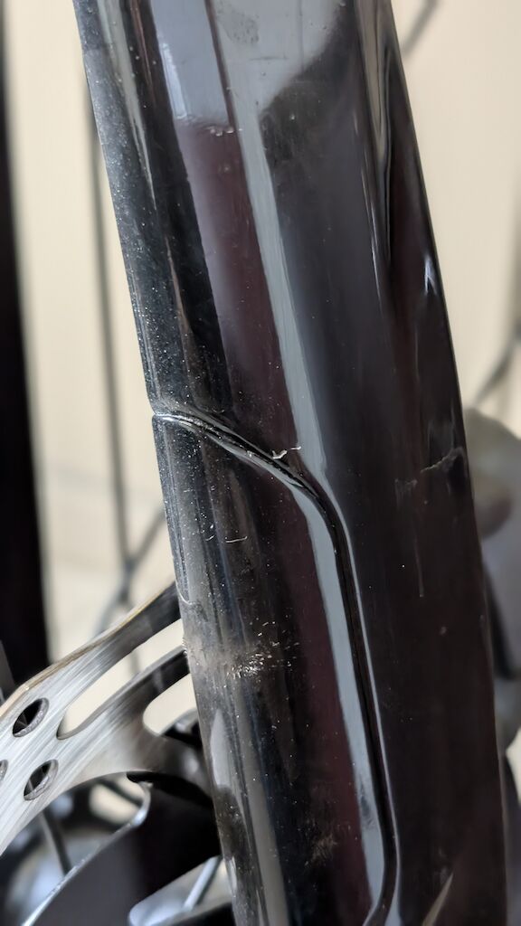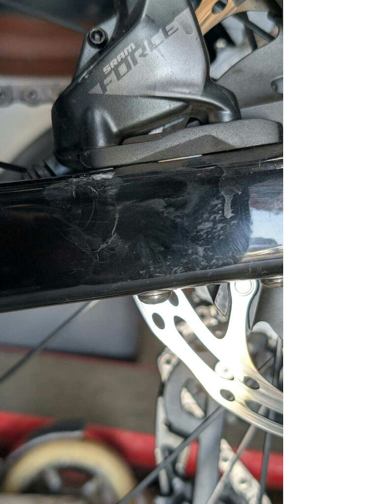 | D’après les photos, le cadre et la fourche semblent réparables. Nous ne disposons pas d’autres photos du vélo. Liste des dommages non exhaustive / Aucune garantie sur l’état du vélo. Les porte-bidons, les pédales et le feu arrière ne font pas partie de l’offre. La facture d’achat du vélo est dans les documents. |