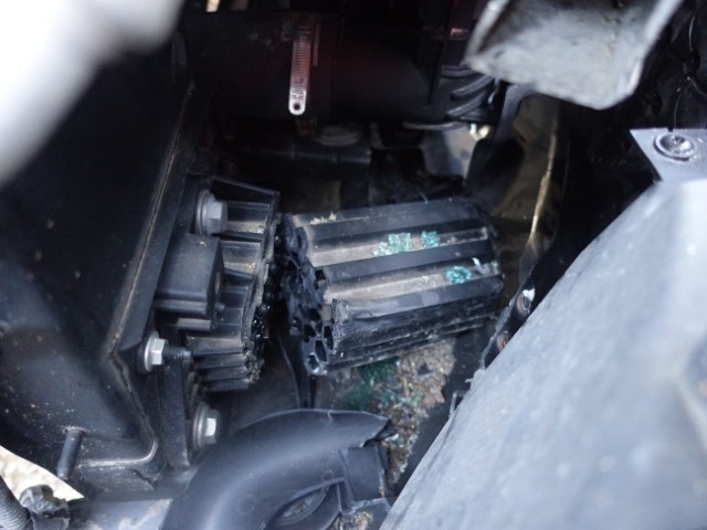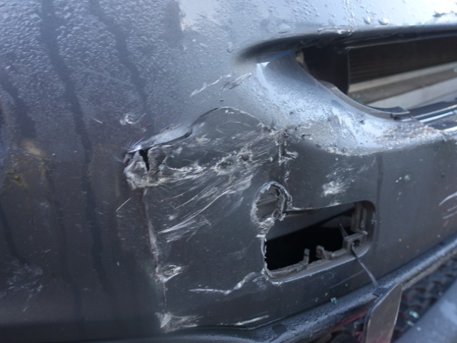 Frontstoßstange + Kühlergrill + Spoiler – Querstrebe – Untere Querstrebe – Luftansaugrohr – Scheinwerfer rechts – Zusatzscheinwerfer rechts – Kotflügel vorne rechts + Kotflügelverbreiterung vorne rechts + Radkasten vorne rechts – Fahrerairbag – Beifahrerairbag – Beifahrergurt – Fahrer-Sicherheitsgurt – Sicherheitsgurt hinten links – Sicherheitsgurt hinten rechts.