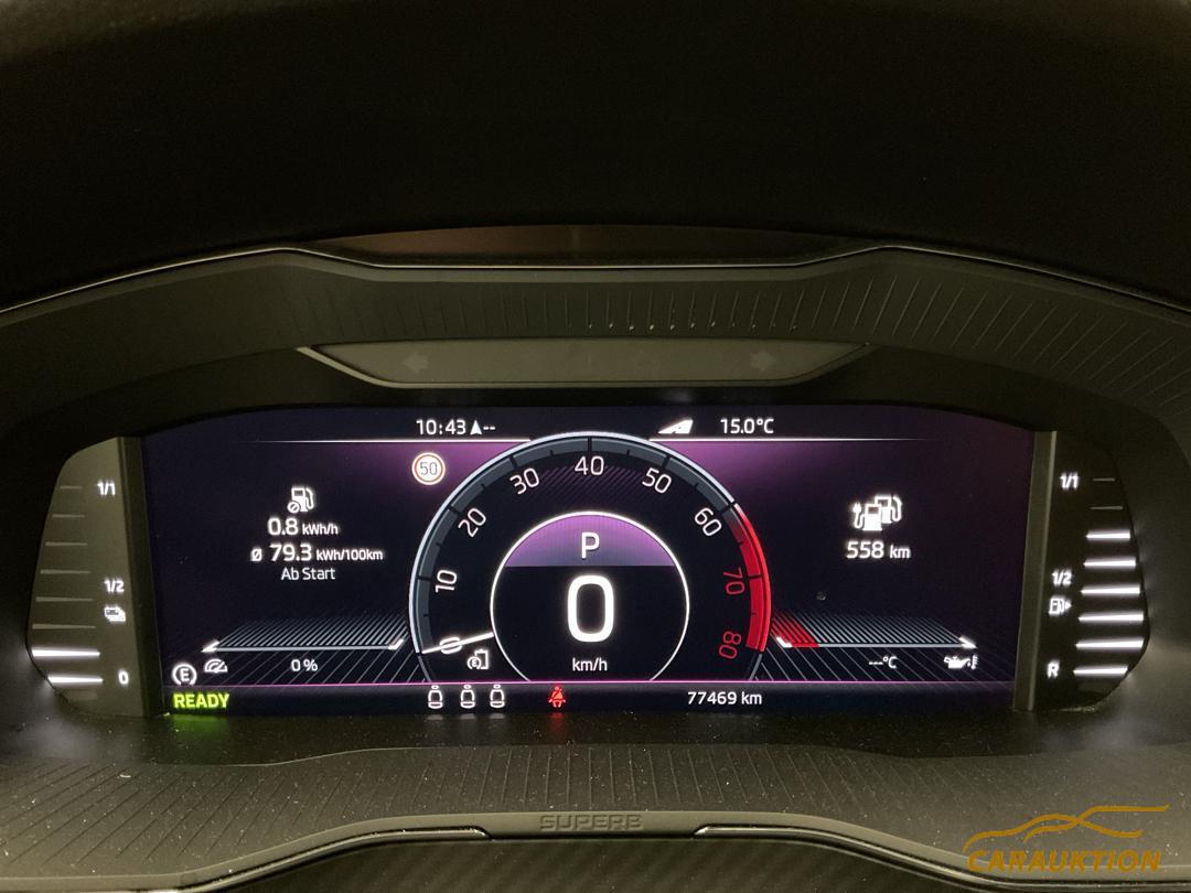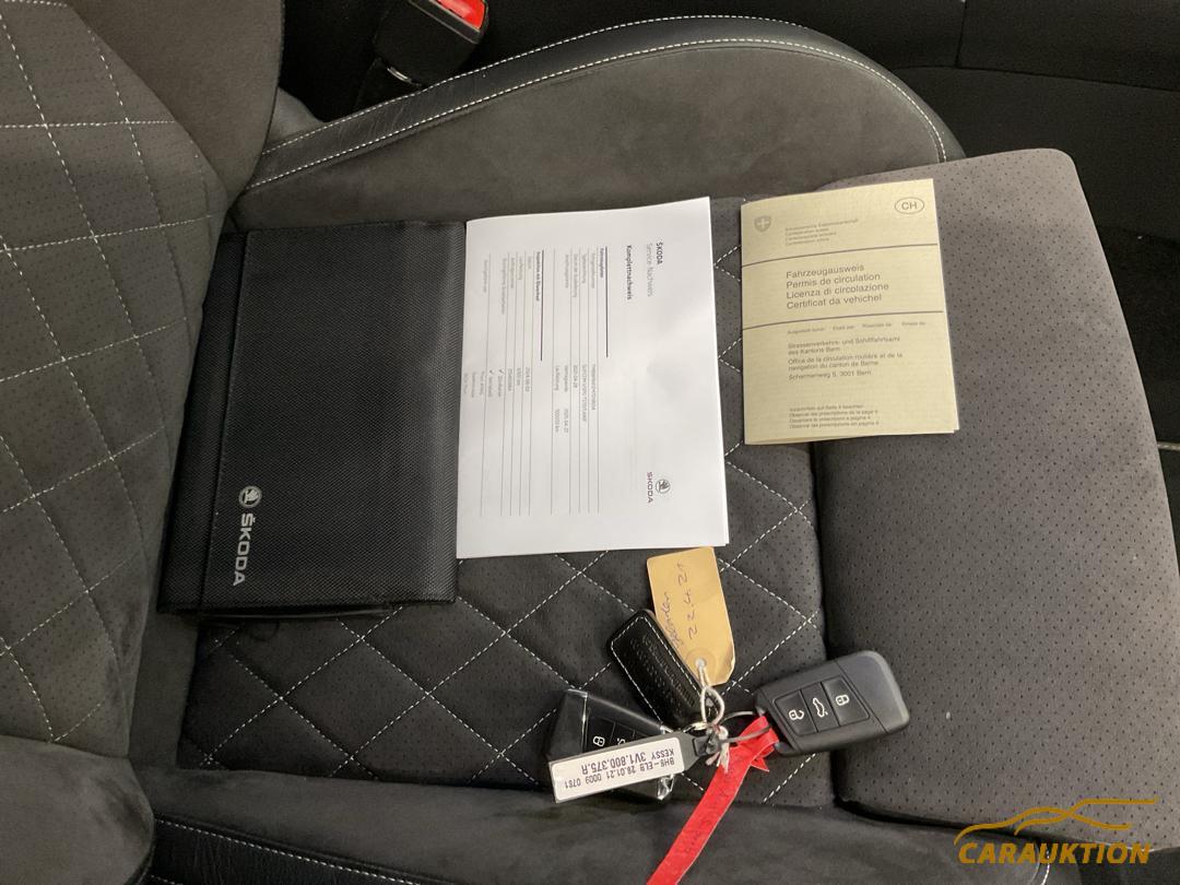 Assist: Travel Assist High – Adaptiver «Lane Assist» – Parklenkassistent «Park Assist» – Spurwechselassistent «Side Assist», – Predictive Cruise Control (PCC) – Virtuelles Cockpit, Licht: Lichtassistent (Coming Home, Leaving Home, Tunnel Light), Fahrwerk: Sportfahrwerk (Bodenfreiheit -15mm), Sitze: 3 Kopfstützen hinten, Dachreling schwarz-lackiert, Antiblockiersystem (ABS), Netztrennwand, LED Plus Paket – Ambientebeleuchtung – Dach-/Leseleuchten vorne und hinten – Türgriffbeleuchtung – Beleuchtung des Make-up Spiegels, Pollenfilter (Staubfilter), Media: Dynamisches Navigationssystem COLUMBUS -9.2″-Farb-Touchscreen,Festplatte, DAB+ Empfänger und Webradio, -Sprachbedienung, «SmartLink», Kartenmaterial Europa; Infotainment Online 3 Jahre; -Telefonvorbereitung mit Phonebox und Wireless Charging, WLAN und LTE Antenne für High Speed Internet, Sitze: Rücksitzlehne geteilt abklappbar, Räder: Pannenset, Akustikpaket mit SunSet- (Seitenscheiben vorn geräuschdämmend, erweiterte Innengeräuschdämmung), Regensensor für Scheibenwischer vorne, Räder: Reifendruck-Kontrollanzeige, SKODA Garantie: Garantie 3 Jahre gegen Lackschäden (ab 1. Inv.), Assist: Berganfahrassistent, Aussentemperaturanzeige, Assist: Rückfahrkamera, Höhenverstellbare Gurten vorne, Elektrische Fensterheber vorne + hinten, Ablagen im Kofferraum, Türgriffe aussen in Wagenfarbe, Heckscheiben-Wisch-/Waschanlage, Media: DAB+ (Digital Audio Broadcasting), Airbag: Seitenairbags und Kopfairbags vorne, Ladekabel Mode 2 (AC / 2.3 kW / 8 Amper), Dekor: Dekoreinlage am Armaturenbrett «SportLine», Servolenkung, Scheibenwaschdüsen beheizt, Teppichfussmatten Sportline, Nebelschlussleuchte, Antriebsschlupfregelung (ASR), Drittes Bremslicht, Sitze: Rücksitzlehne mit Fernbedienung aus Kofferraum, Heckscheibenheizung, Airbag: Window-Kopfairbags, Sitze: Vordersitze heizbar, ISOFIX Kindersitzvorrichtung, Airbag: Seitenairbag für Fahrer und Beifahrer, Schlüsselloser Motorstart, Elektronisches Stabilitäts-Programm (ESP), SKODA Garantie: Garantie 2 Jahre ohne Kilometerbegrenzung (ab 1. Inv.), Airbag: Airbag Fahrer und Beifahrer, Berührungsloses Öffnen der Heckklappe, Wegfahrsperre elektronisch, Einstiegsschienen vorne und hinten, Schliess- und Startsystem KESSY, Licht: Nebelscheinwerfer mit Cornering-Funktion, Assist: Parksensoren vorne und hinten, 3-Punkt-Sicherheitsgurte auf allen Plätzen, Media: SmartLink, Assist: Elektronische Differentialsperre (EDS), Assist: Müdigkeitserkennung, Elektrische Heckklappe, Airbag: Seitenairbags hinten, Fahrwerk: Adaptive Fahrwerksregelung DCC, Chrompaket Exterieur (Umrandung der Seitenscheiben mit Chromleiste), SKODA Garantie: Garantie +2 Jahre / 100’000 km (ab 1. Inv.), Sitze: Elektrisch einstellbare Vordersitze mit Memoryfunktion Sitztiefeneinstellung, Lendenwirbelstützen vorne elektrisch einstellbar inkl. Fussraumbeleuchtung vorne und hinten, ohne Ablagefach unter dem Beifahrersitz, Ablagen in den Türen, Halbautomatische Gepäckraumrolloentriegelung mit Multifunktionsbox, Klima: 3-Zonen-Klimatisierungsautomatik, Zentralverriegelung mit Fernbedienung, Gurtkontrolle, Aussenspiegel elektrisch einstell-, beheiz- und anklappbar mit Memoryfunktion, automatischer Abblendung und Einsteigebeleuchtung, Licht: LED Rückleuchten (Variante Top), Assist: Spurhalteassistent «Lane Assist» und Spurwechselassistent «Side Assist», Totwinkelassistent «Blind Spot Detection», Stauassistent und Emergency Assistent, Airbag: Airbag Beifahrer deaktivierbar, Fussraumbeleuchtung vorne und hinten, Sitze: Mittelarmlehne hinten mit Durchlademöglichkeit, Media: 2 USB-C Anschlüsse vorne, Regenschirmfach inkl. Regenschirm, Proaktives Insassenschutzsystem, Scheinwerferreinigungsanlage, automatisch, Aussenspiegel schwarz, Pedalerie mit Aluminiumauflage, Lenkrad: 3-Speichen-Supersport-Leder-Multifunktionslenkrad mit Schaltwippen, perforiert, Getriebe: 6-Gang DSG, Dunkel getönte Scheiben (SunSet), Media: Infotainment Online 3 Jahre + “Care Connect” (Remote Access 3 Jahre), Ladekabel Mode 3 (AC / 3.6 kW / 16 Amper), Media: Soundsystem CANTON (12 Lautsprecher und Subwoofer), Getönte Scheiben, Licht: Voll LED-Scheinwerfer und LED Rückleuchten; Scheinwerfer mit «Matrix-Beam-Funktion» für Fernlicht, dynamische Blinker hinten, Katalysator geregelt, Airbag: Knie-Airbag für Fahrer, SKODA Garantie: Garantie 12 Jahre gegen Durchrostungs (ab 1. Inv.), Assist: Verkehrszeichenerkennung, Assist: Geschwindigkeitsregelanlage (Tempomat) mit Distanzkontrolle (ACC) bis 210 km/h, inkl.Front Assistant und City-Notbrems.