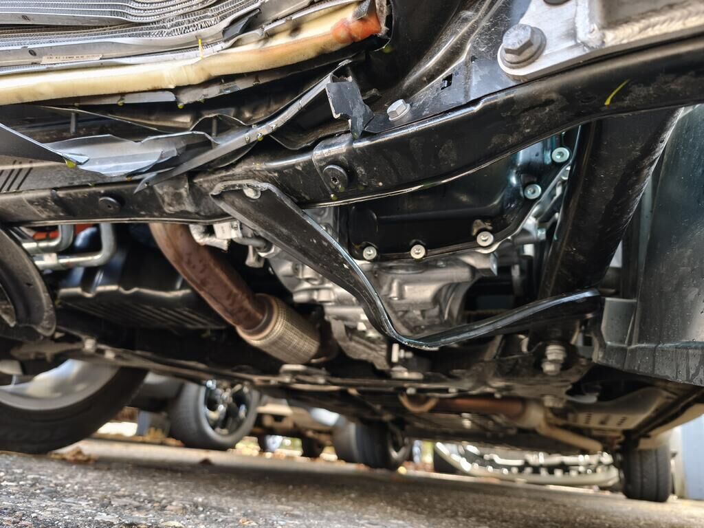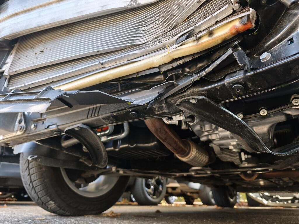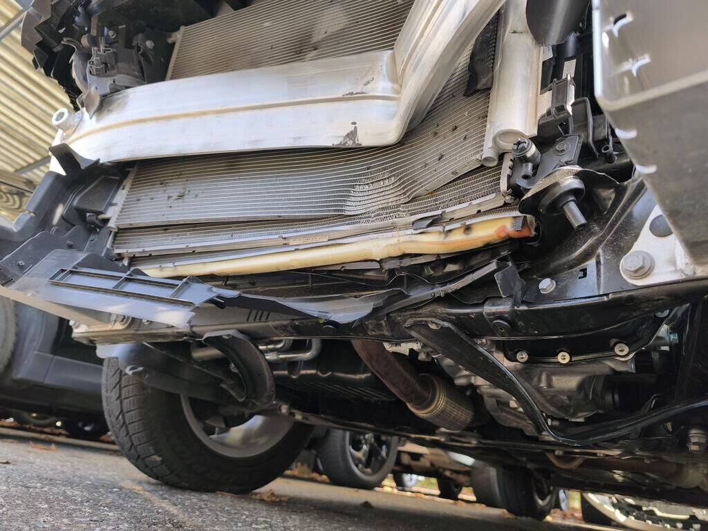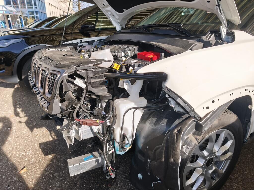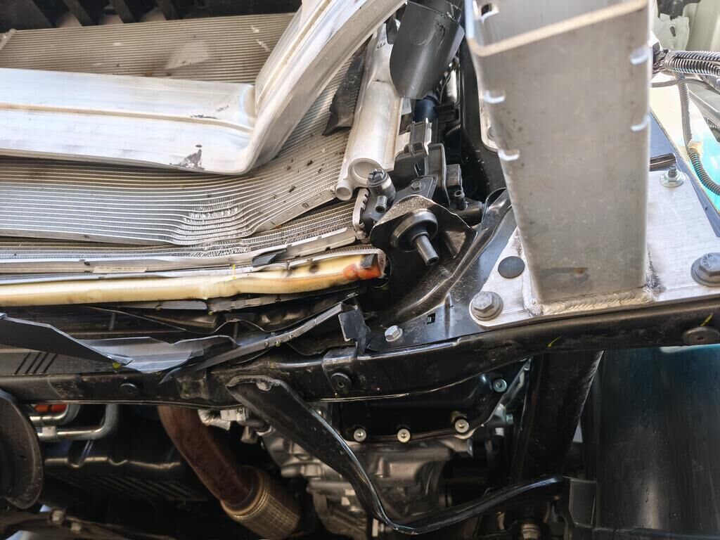 Der Fahrschemel is gestaucht, die Aufnahmen sind beschädigt und deformiert. Die Vorderachse ist beschädigt. Eventuell ist der Antriebsstang ebenfalls beschädigt worden. Konnte nicht geprüft werden!