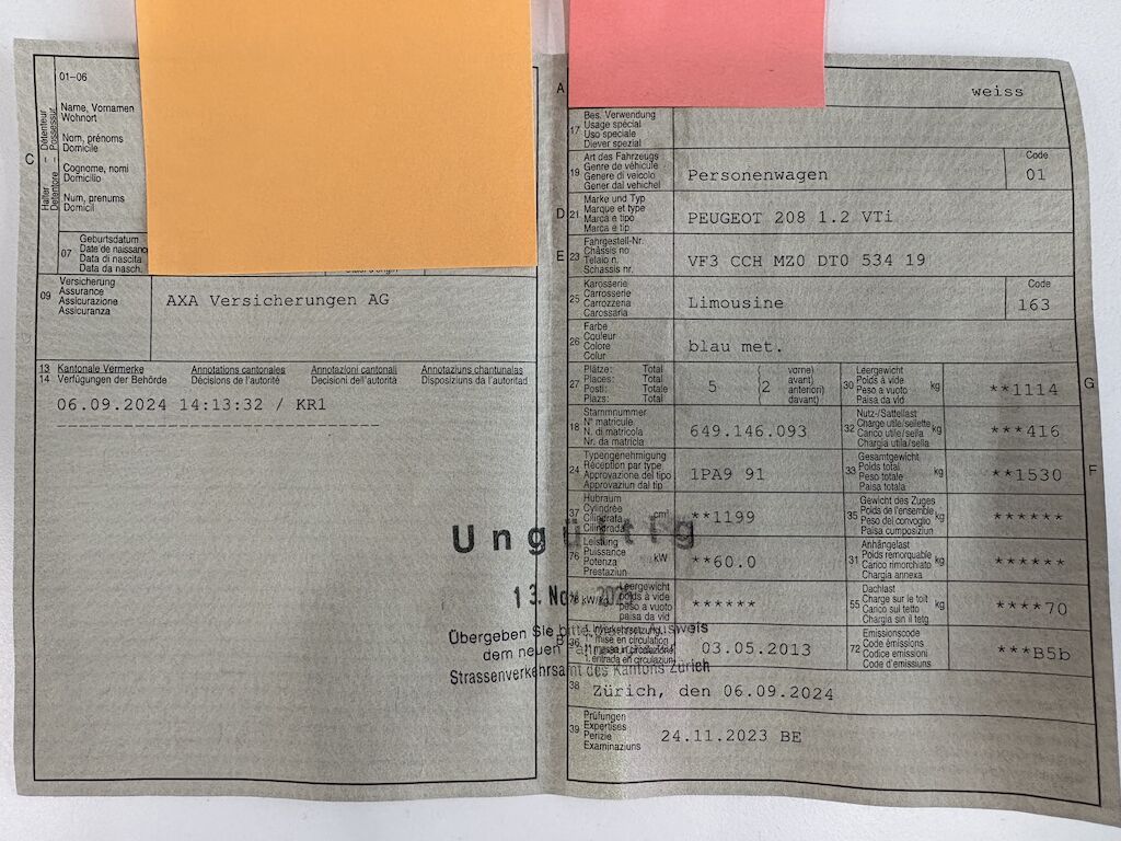 Keine technische Prüfung (Werkstatttest) vorgenommen