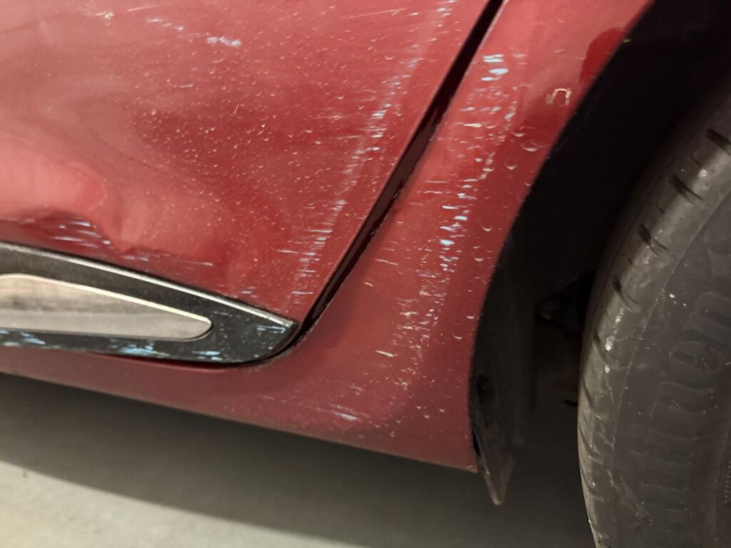 Seitenwand und Türe hinten links stark deformiert. Stossfänger hinten mit Oberflächenschaden. Diverse weitere Carrosserieschäden gemäss Bilder.