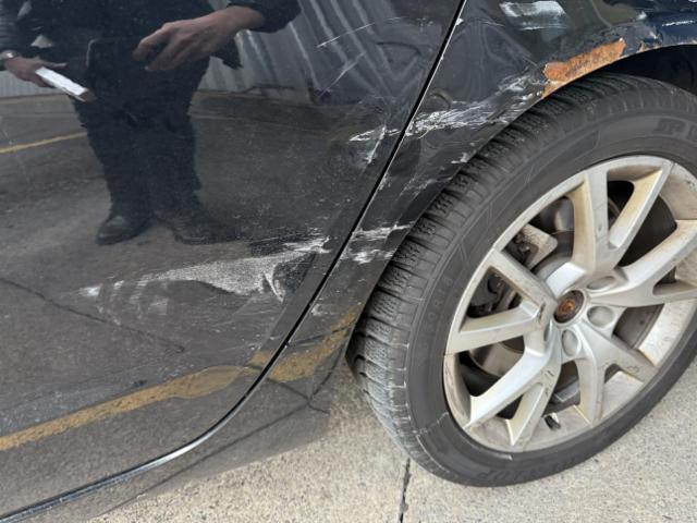 Links Linke Seite beschädigt. Tür hinten links ist eingedrückt. Heck Achse Sonstige Schäden |