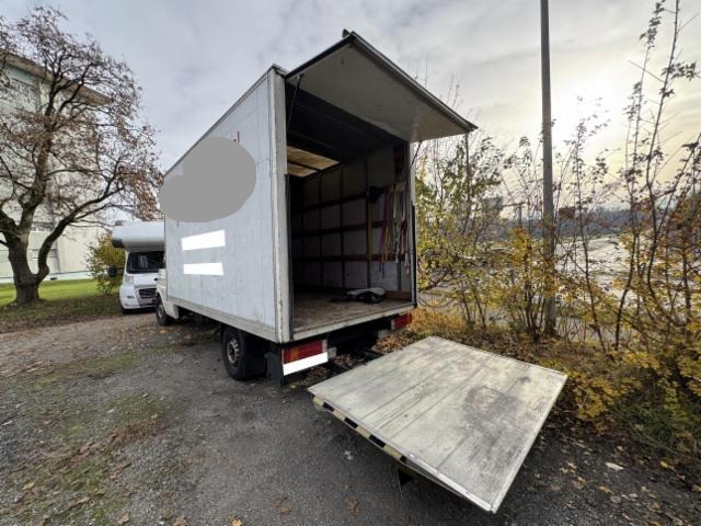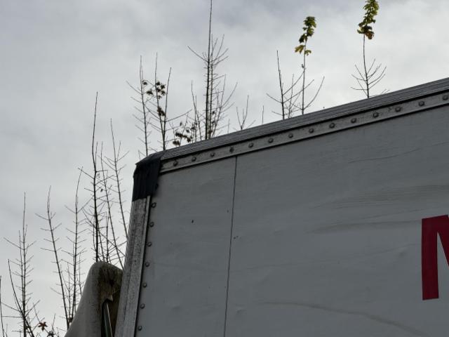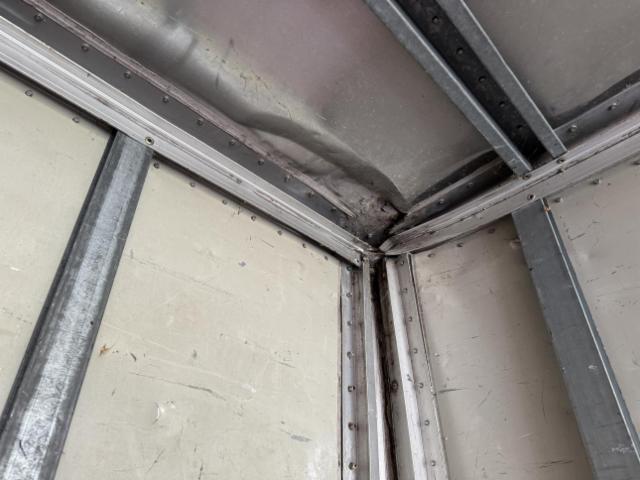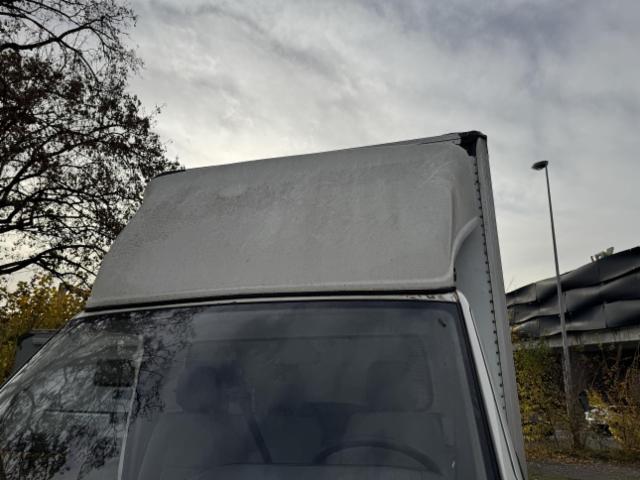 Stirnwand und Dachbereich vorne rechts bei Aufbau beschädigt, Russbildung bei allen Ecken, Wassereinbruch in den Laderaum