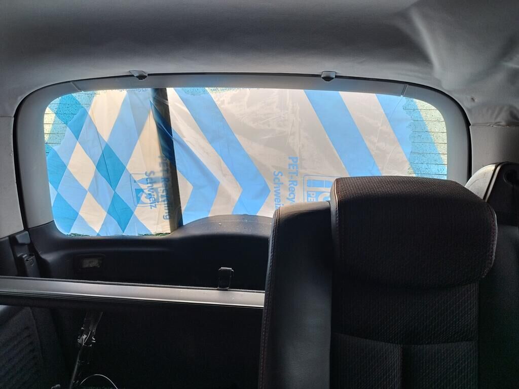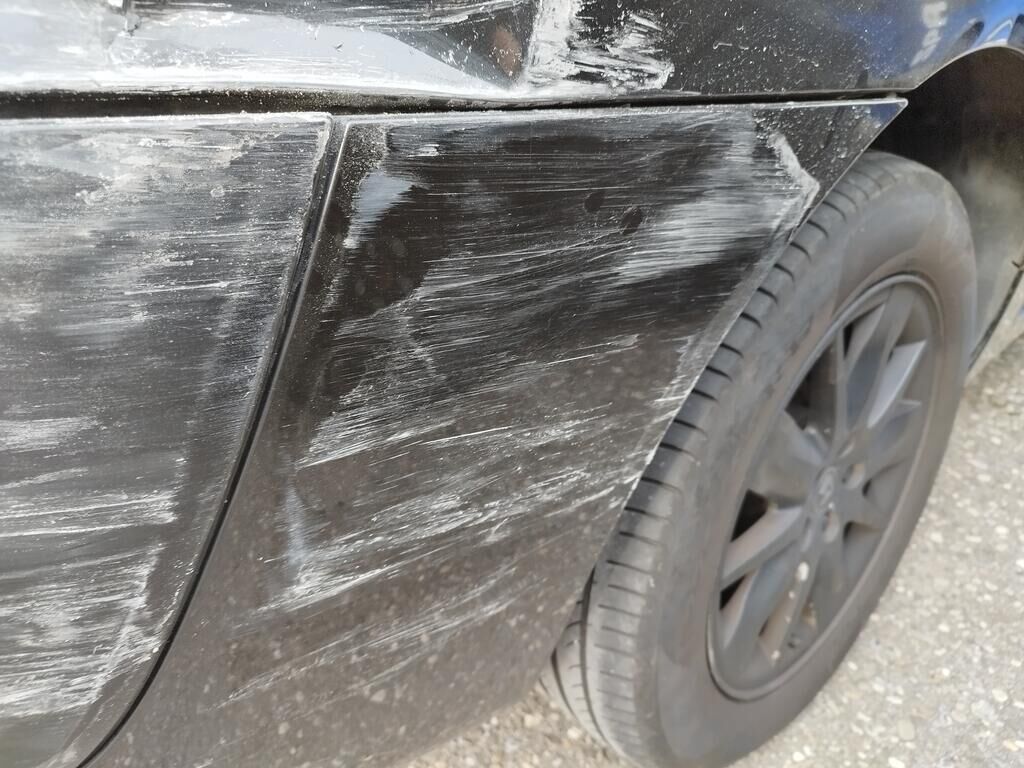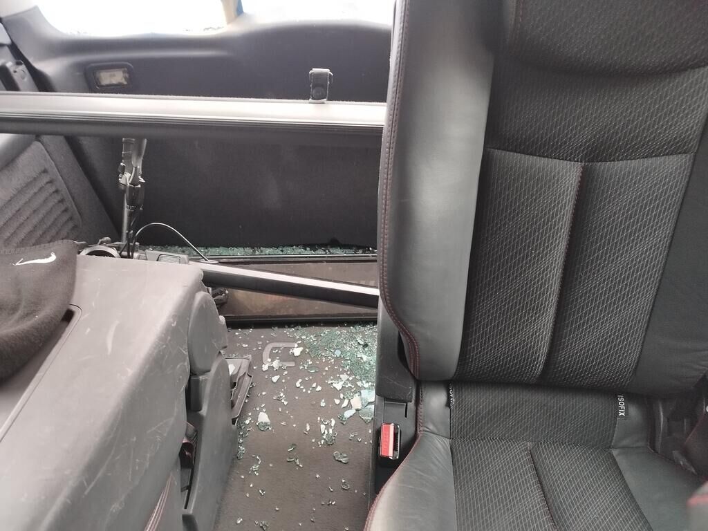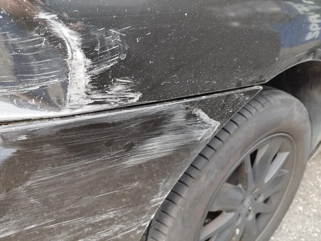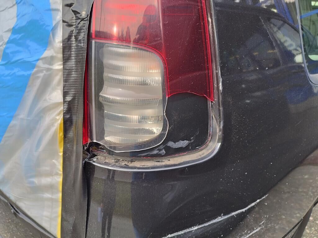 Die Stossstange hinten rechts hat Kratzspuren, die Seitenwand hinten rechts hat Kratzspuren und ist deformiert, die Heckleuchte rechts ist gerissen, die Heckscheibe ist zersplittert, die Heckklappe ist gerissen.