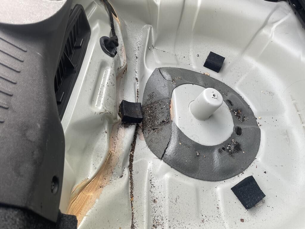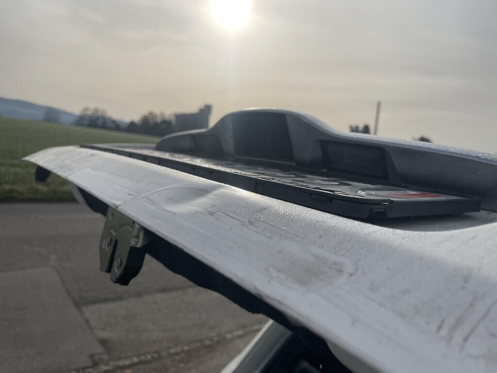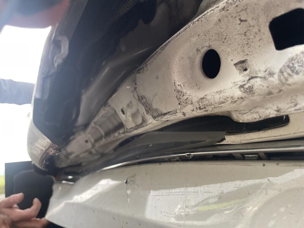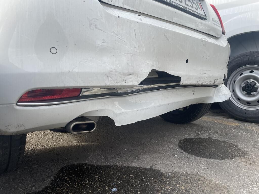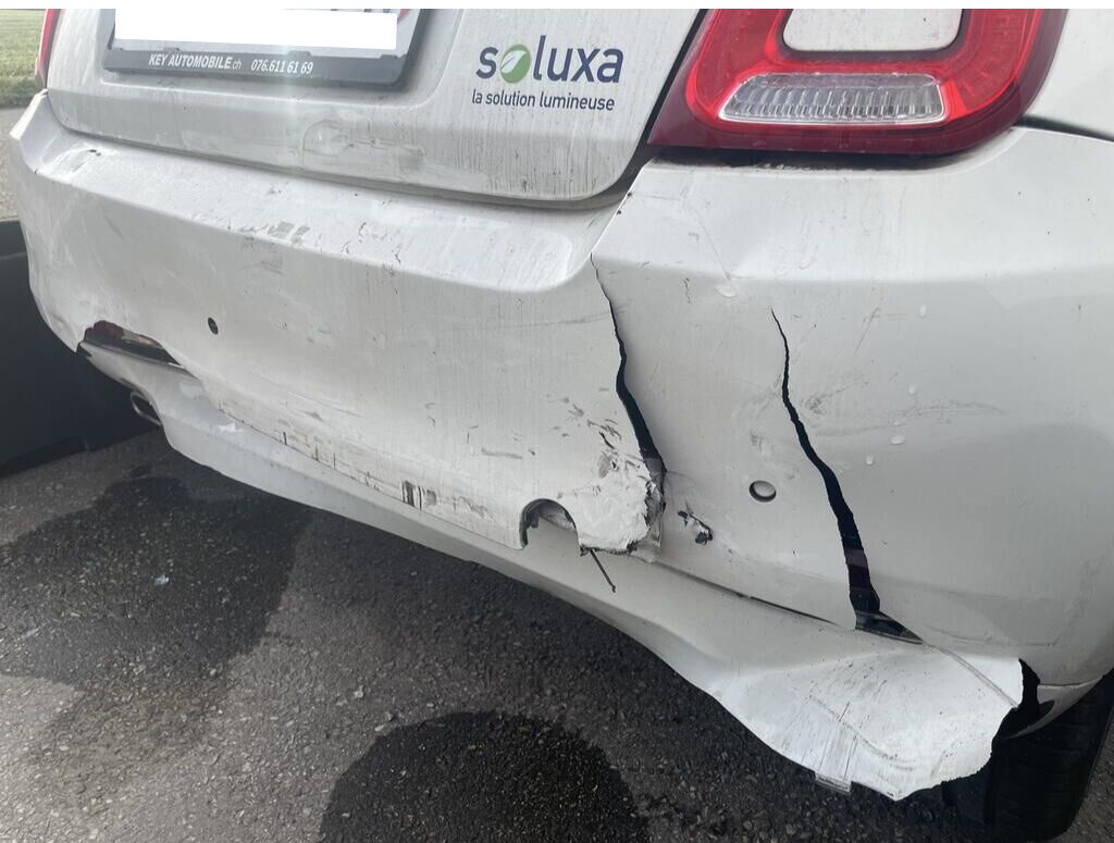 Pare-chocs, renfort, jupe, fond de coffre, capteur de parc et hayon endommagés.