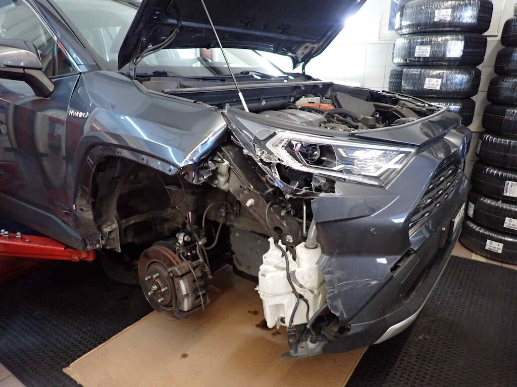 Danno collisione anteriore destra con meccanica e motore rotto.