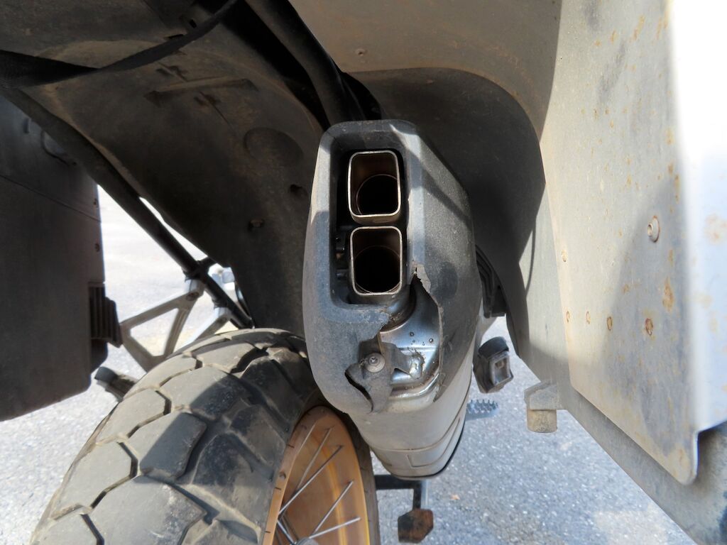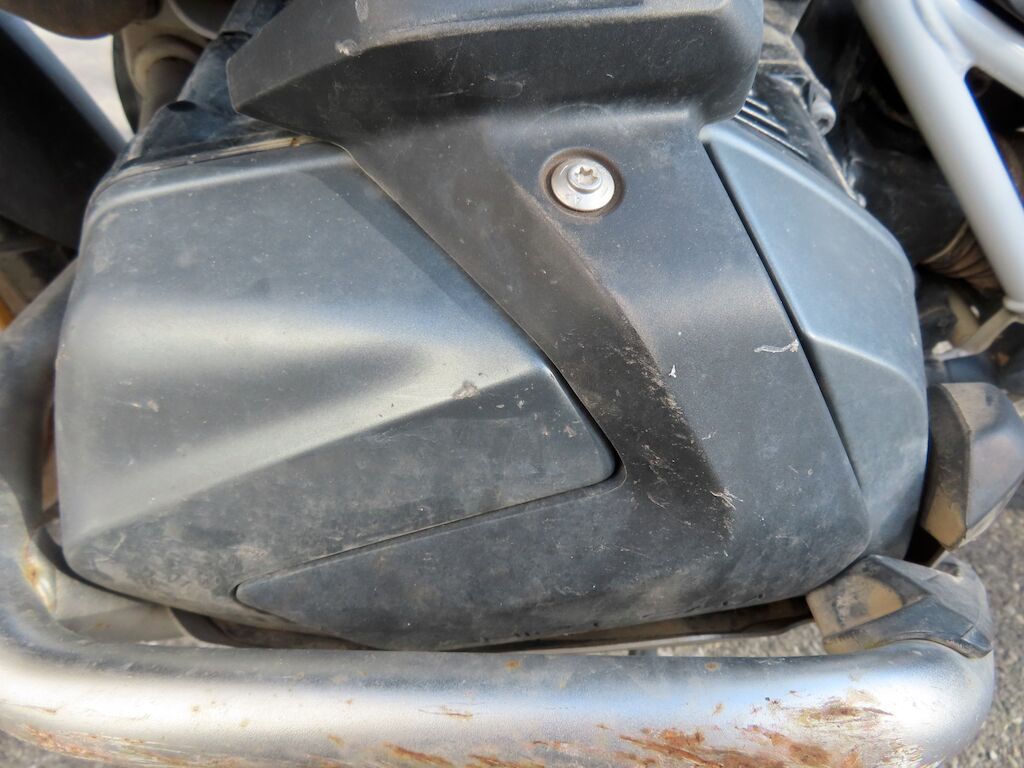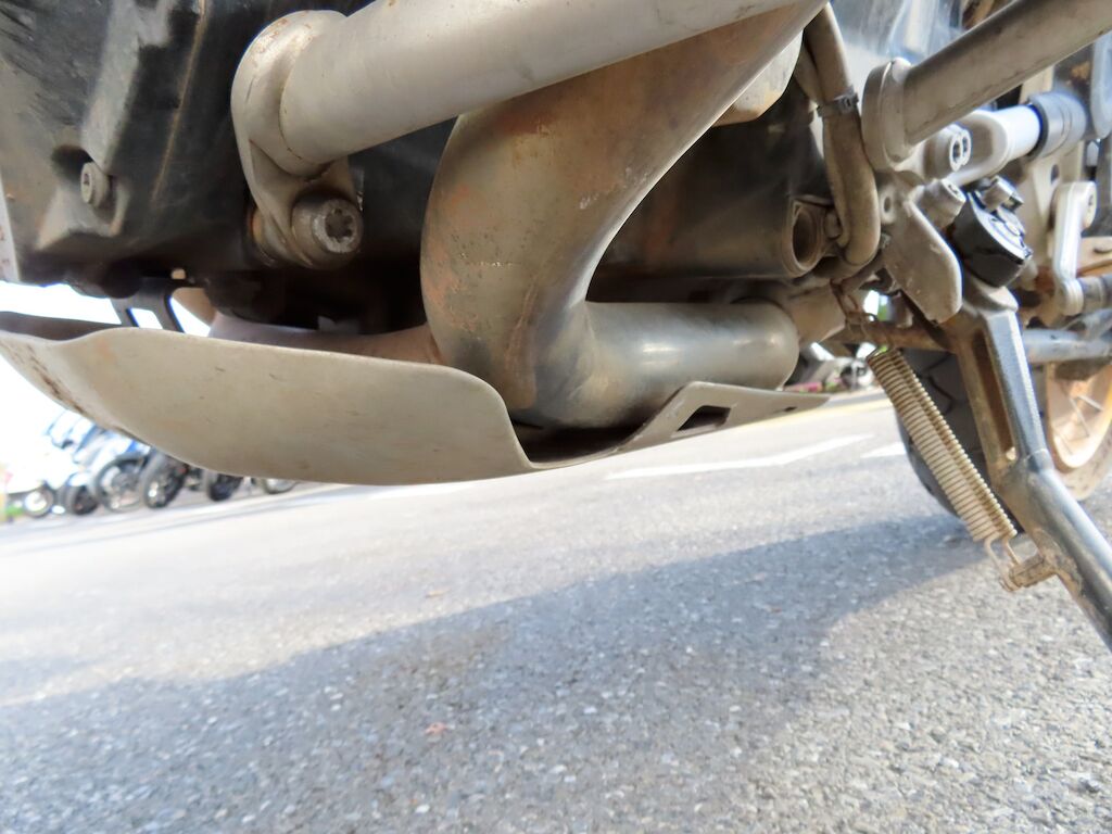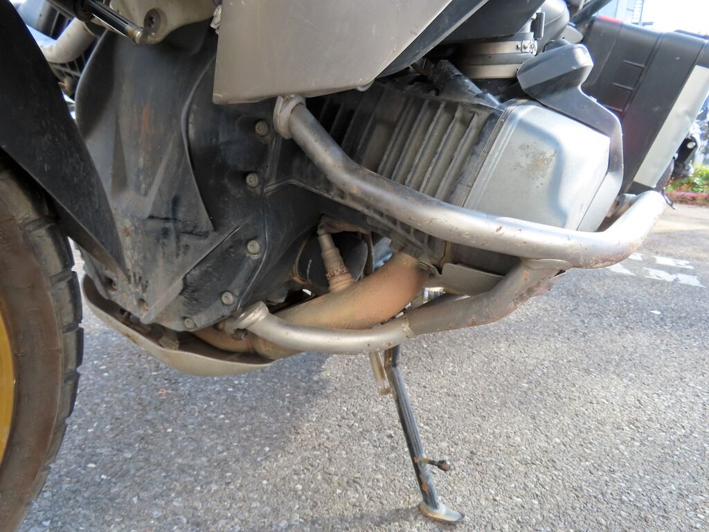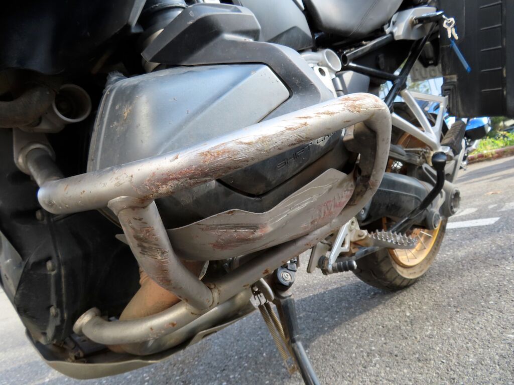 – Pare-boue avant inférieur et supérieur, tous les carénages de la partie avant gauche, pare-brise + mécanisme, protège main, clignotants, rétroviseur, arceau de protection moteur, couvre culasse, couvre bobine d’allumage, sabot moteur, sélecteur de vitesse, cale pied, selle, valise, support de top case, embout d’échappement, divers supports et cache plastique : Impactés-éraflés-brisés
