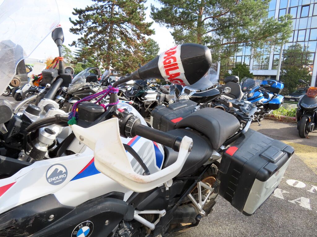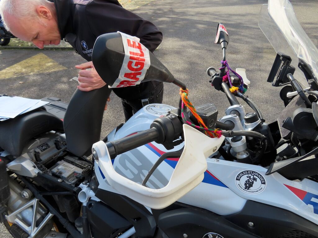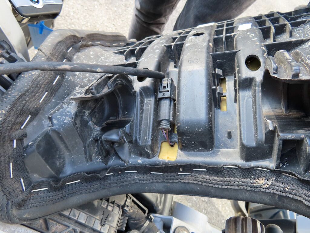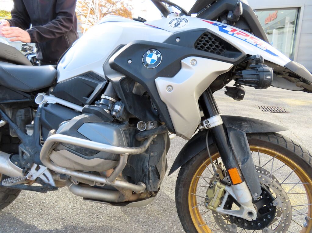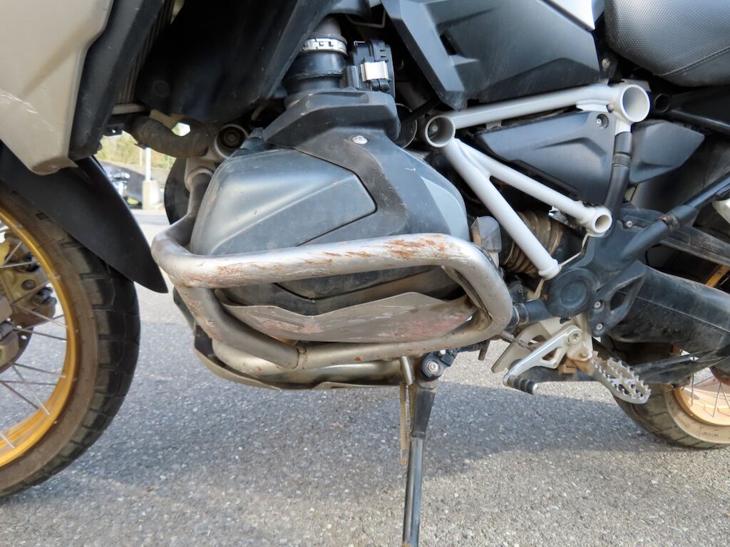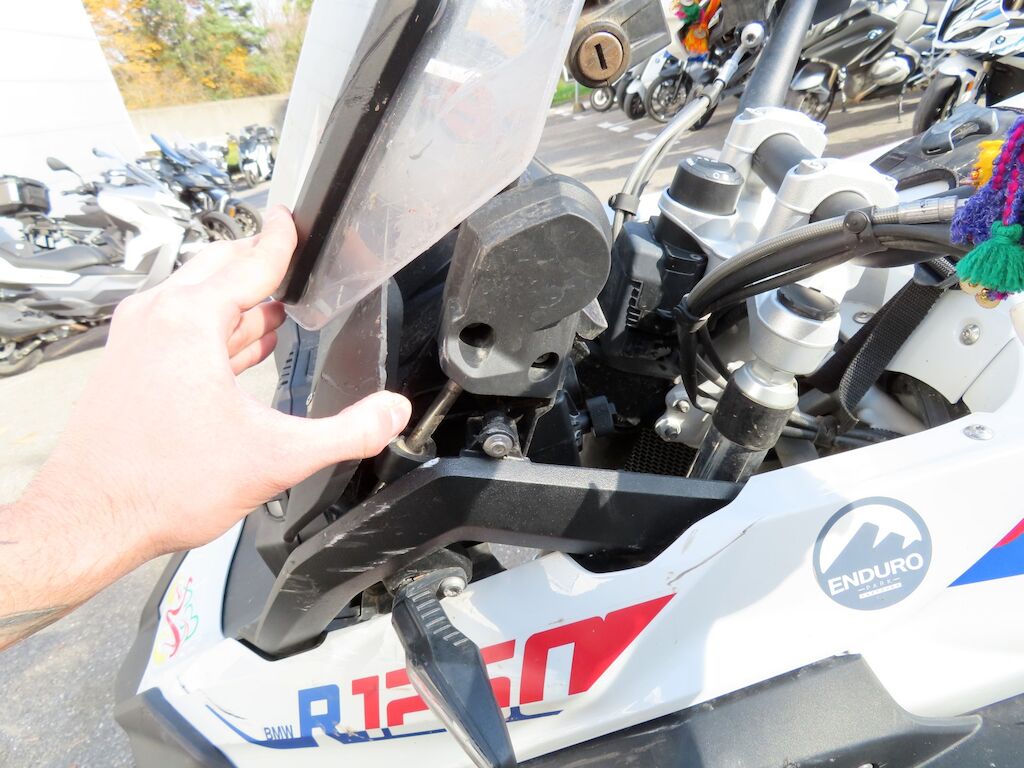 – Pare-boue avant inférieur et supérieur, tous les carénages de la partie avant gauche, pare-brise + mécanisme, protège main, clignotants, rétroviseur, arceau de protection moteur, couvre culasse, couvre bobine d’allumage, sabot moteur, sélecteur de vitesse, cale pied, selle, valise, support de top case, embout d’échappement, divers supports et cache plastique : Impactés-éraflés-brisés