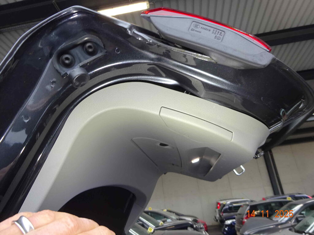 Heck Stossfänger mit Balken, Heckblech mit Innenverkleidung, Kofferboden, Heckklappe und beide inneren Schlussleuchten beschädigt