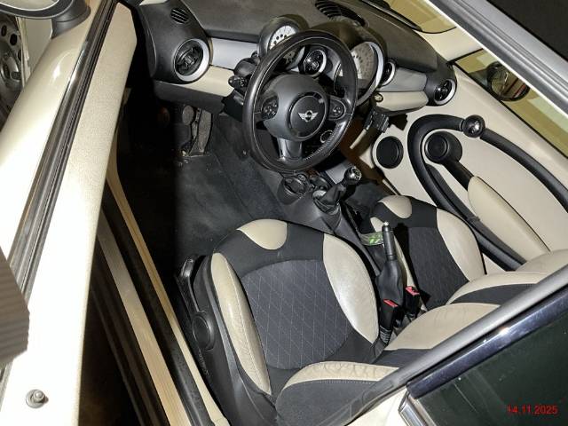Lenkrad: Sport-Lederlenkrad, Radio MINI Boost, Aussenspiegel rechts und links elektrisch verstell- und beheizbar und Scheibenwaschdüsen beheizbar, Schutzverglasung, Leichtmetallräder 6-Star Twin Spoke 16J, Veloursfussmatten vorne und hinten, Paket: Lichtpaket, Multifunktionslenkrad, Elektrisches Glasschiebe- / Hebedach, Colour Line Polar Beige, Scheibenwischer vorne mit Regensensor und automatischem Einschalten der Abblendlichter, Black Bonnet Stripes (Motorhaubenstreifen schwarz), Ablagenpaket, Klima: Klimatisierungsautomatik, Leichtmetallräder schwarz, Dynamische Traktionskontrolle (DTC), Sitze: Vordersitze höhenverstellbar, Sitze: Sportsitze vorne, Räder: Notrad, Ladeboden variabel, Licht: Nebelscheinwerfer