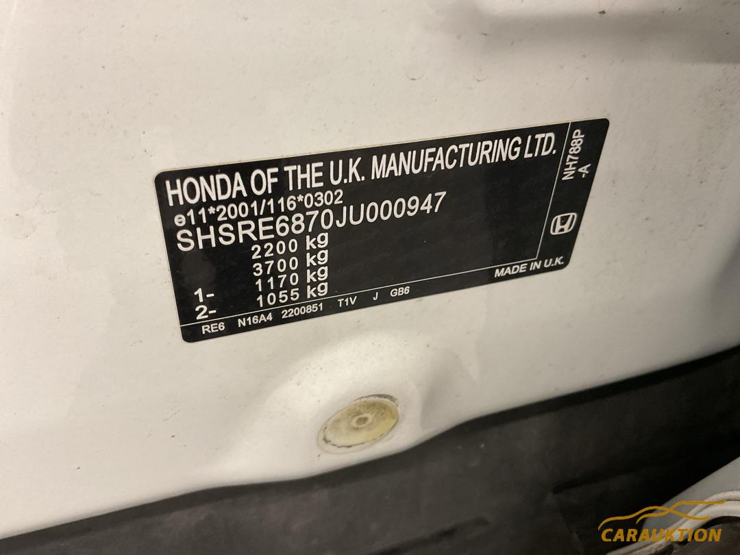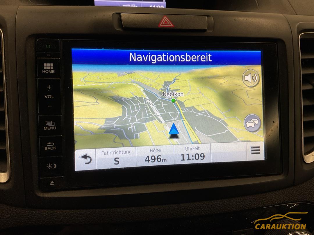 Leuchtweitenregulierung von innen, Anhänger Stabilisierungkontrolle TSA, Lackierung: Uni-Lackierung, Türgriffe aussen in Wagenfarbe, Innenspiegel automatisch abblendbar, 6 Lautsprecher, Pollenfilter (Staubfilter), Tempomat, Wegfahrsperre elektronisch, Fahrersitz höhenverstellbar, Armlehnen vorne, Beide Make up-Spiegel beleuchtet, Airbag: Airbag Fahrer und Beifahrer, Innenraumbeleuchtung, Rücksitzlehne geteilt abklappbar, Laderaumabdeckung, Sitze: Vordersitze heizbar, Licht: Halogenscheinwerfer, Automatisches Einschalten der Abblendlichter, Honda Connect mit Navigationssystem Garmin und CD-Player, Licht: LED-Tagfahrlicht, Regensensor für Scheibenwischer vorne, Applikationen Chrom, Elektronisches Stabilitäts-Programm (VSA), Aktive Kopfstützen, TPMS Reifendrucküberwachungssystem, Licht: Coming-home-Funktion, Leseleuchten vorne, Getönte Scheiben Privacy, Getönte Scheiben, 3-Punkt-Sicherheitsgurte auf allen Plätzen, Seitenairbags, Lenkrad längs- und höhenverstellbar, Elektrische Lenkung (EPS), Elektrische Fensterheber vorne + hinten, Licht: Nebelschlussleuchte, Media: Bluetooth Freisprecheinrichtung, Brillenablage, Lenkrad und Schalthebelgriff in Leder, Aussenspiegel elektrisch einklappbar, Nebelscheinwerfer, Kofferraumbeleuchtung, Radiofernbedienung, Hill-Start Assist (HSA), Diebstahlwarnanlage, Window-Kopfairbags, Assist: Rückfahrkamera, Beleuchtetes Handschuhfach, 9-Stufen-Automat sequentiell, Fahrwerk: Servolenkung, Dachreling, 2-Zonen-Klimaautomatik, Allradantrieb permanent, Gurtstraffer vorne, Heckscheibenheizung, Notbremsassistent, ABS, EBD elektronische Bremskraftverteilung, Multifunktionslenkrad mit Radiobedienung, Zentralverriegelung mit Fernbedienung, ISOFIX Kindersitzvorrichtung, Einstellbare Lendenwirbelstütze für den Fahrersitz, Active City Brake, Aussenspiegel rechts und links beheizbar und elektrisch verstellbar, Lenkrad-Wippschaltung (Paddles), Airbag: Beifahrer deaktivierbar, Hill Descent Control (HDC), Mittelarmlehne hinten, Steckdose 12V, Partikelfilter und Oxydationskatalysator, Kartentasche an der Rückenlehne, Assist: Einparkhilfe vorne und hinten, Multifunktionsanzeige, Stoff-Ausstattung, USB-Anschluss, Licht: Drittes Bremslicht, Ambientebeleuchtung