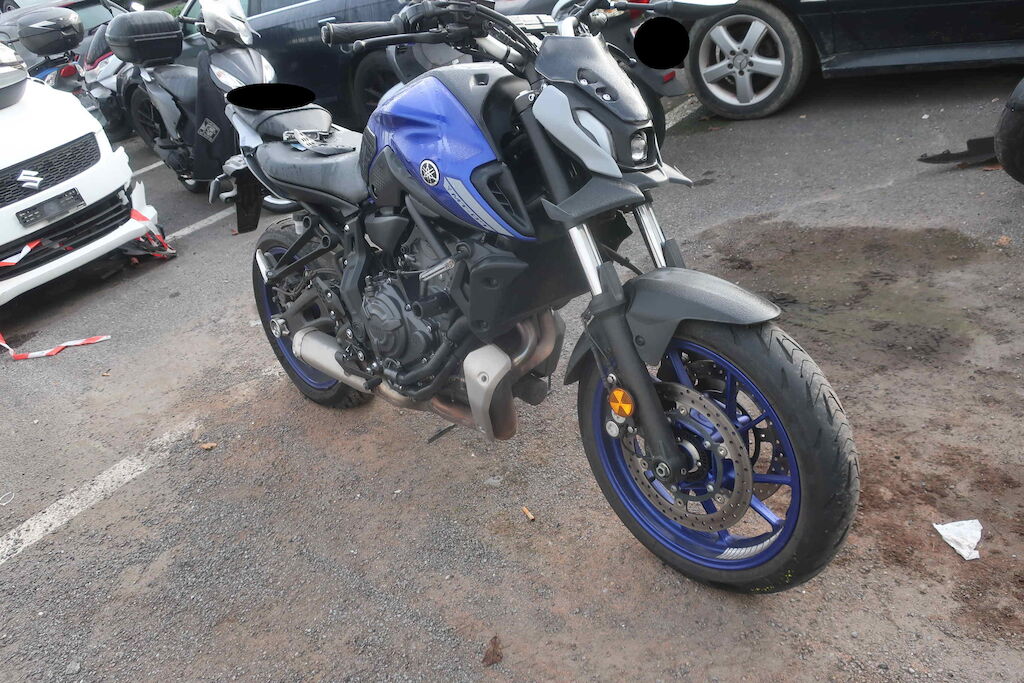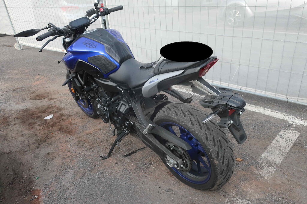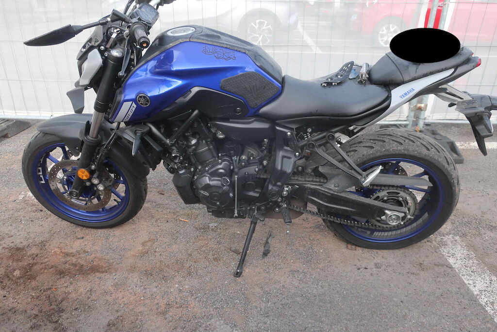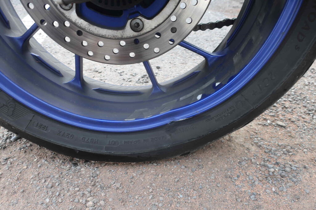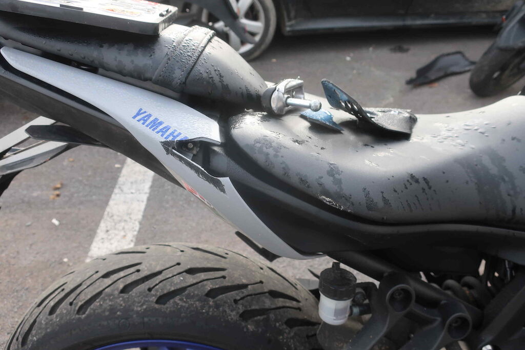 Dommage sur les 2 côtés complets, dont cadre, bras oscillant, carter d’embrayage, selle, jante et pneu AR, échappement… (liste non-exhaustive)