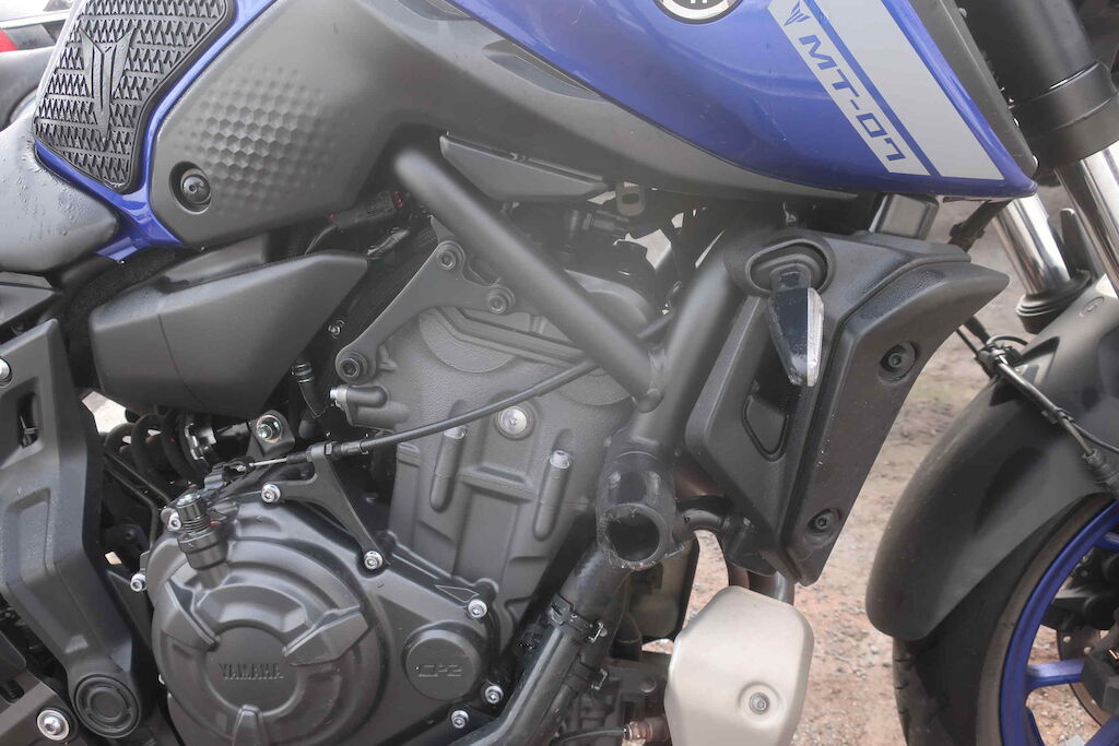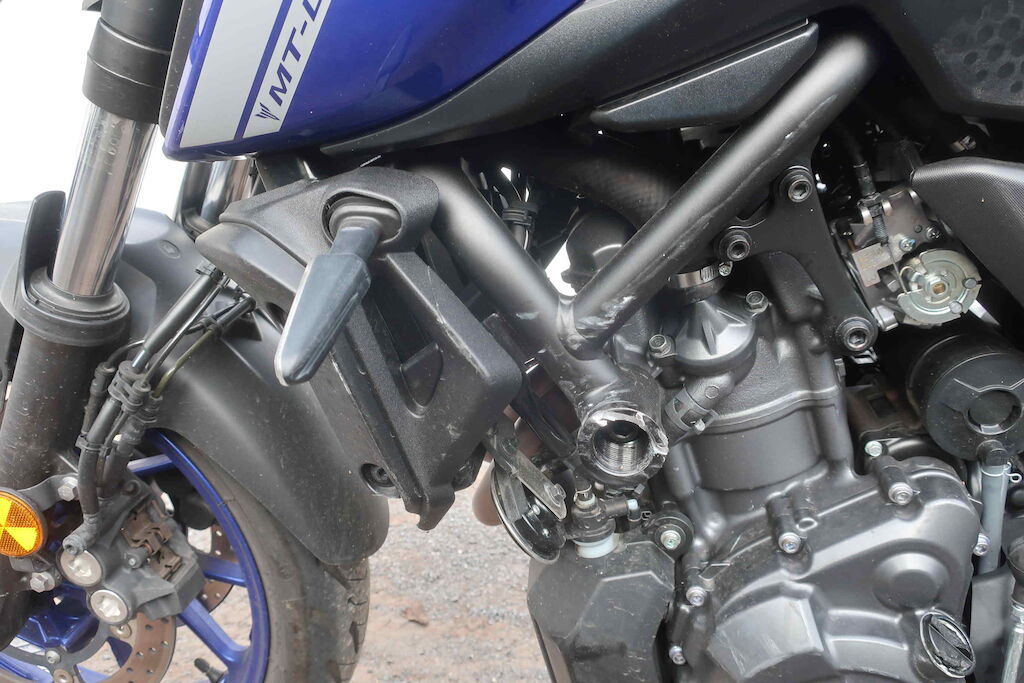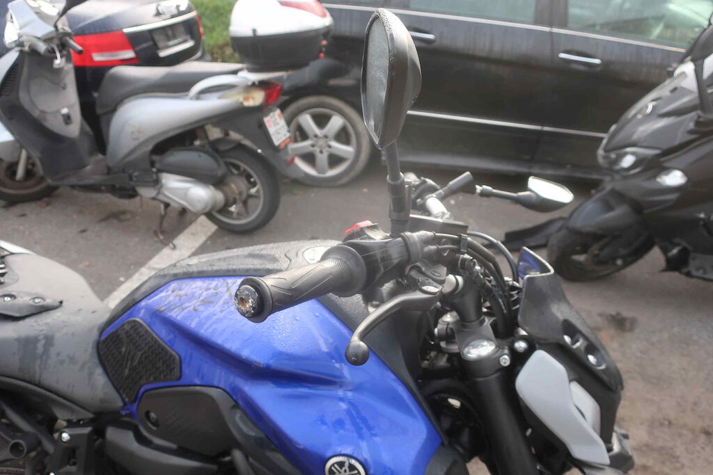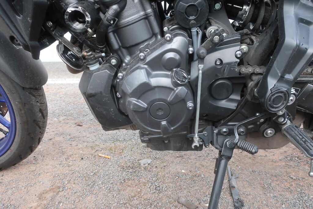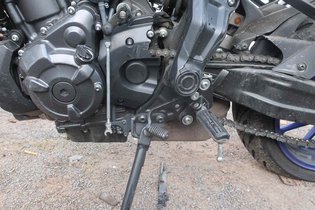 Dommage sur les 2 côtés complets, dont cadre, bras oscillant, carter d’embrayage, selle, jante et pneu AR, échappement… (liste non-exhaustive)