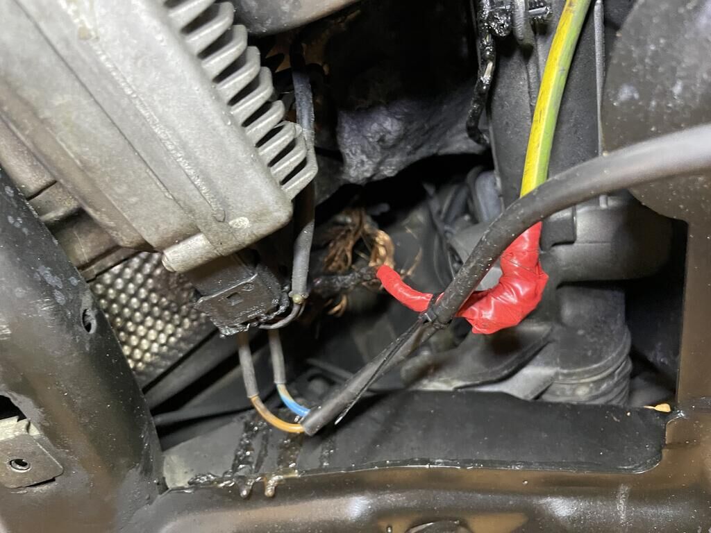 Mehrere Schläuche und Kabel unter dem Fahrzeug verbrammt