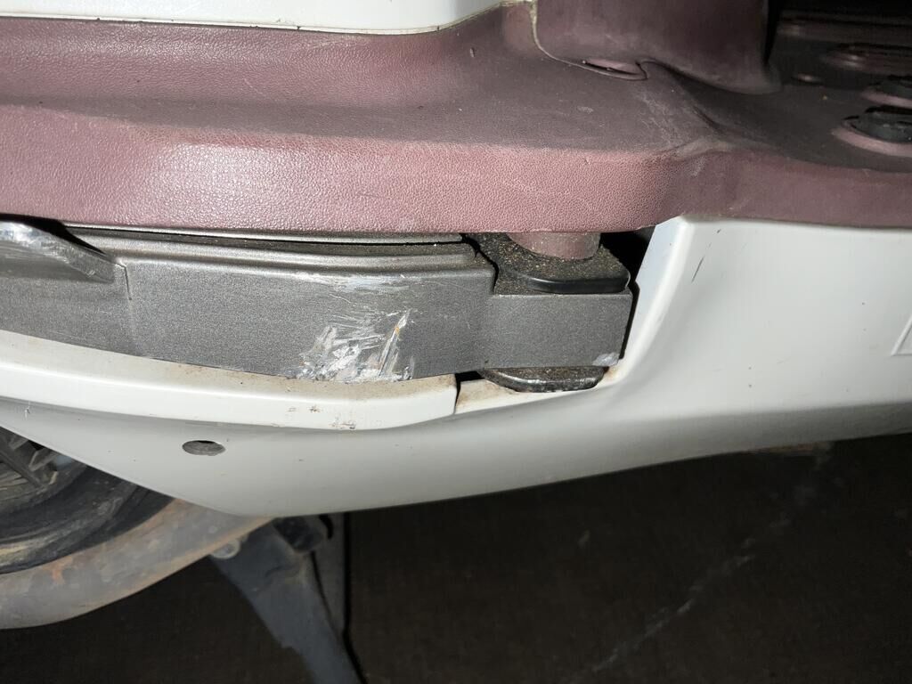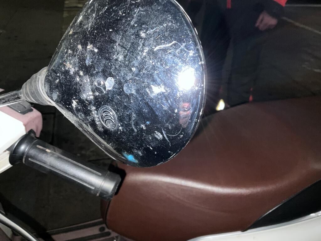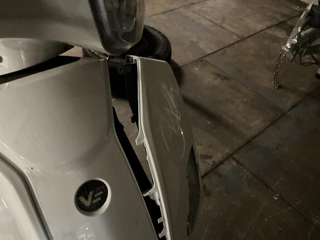 Serrure de contact forcée. Carénage AVG, AVD, levier DR, rétroviseur GA endommagés.