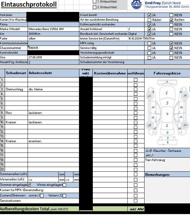 | Keine technische Prüfung (Werkstatttest) vorgenommen Diverse Schäden an Karosserie/Lack. 8-fach bereift. Es handelt sich um ein Hunde-Fahrzeug. DPF/FAP Filter nicht kontrolliert – letzter Service 16.10.2024 bei 75687Km – Kratzer/delle an Heckstossstange – Spiegelkappe R. Kratzer – Fahrertüre Kratzer Fahrzeug hat noch 2 Neuwertige Sitze für 3. Sitzreihe |