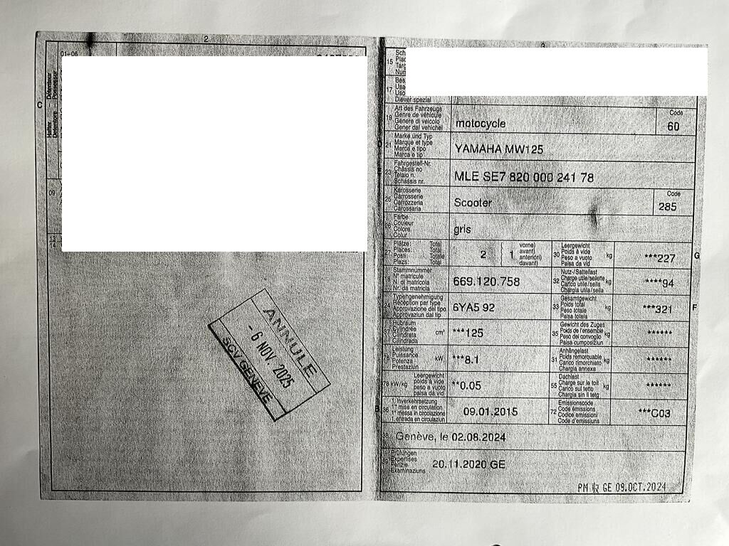 | Tipo veicolo / Costruzione / Porte | Motoveicolo / Scooter / 0 |